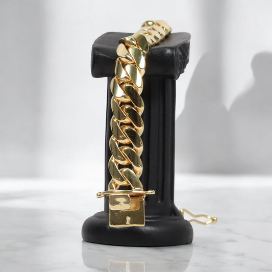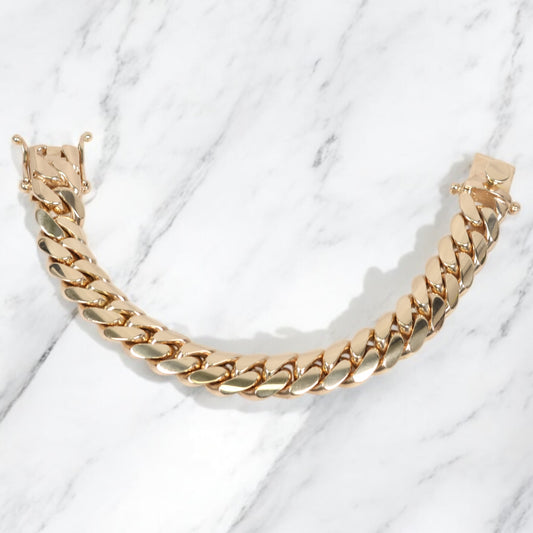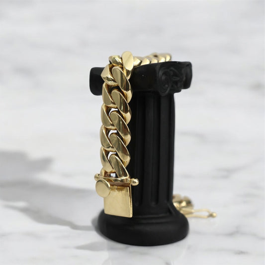 10K YG CL Cuban Links Bracelet / 175.1gr / 17.3mm / 8.5in / Diamond In The LockThis product is avalilable to pick up in our Doral store.Features:Karat: 10K YG.Stone: Diamond In The Lock.Weight: 175.1grSize: 17.3mm / 8.5inSku 3640 - 7746