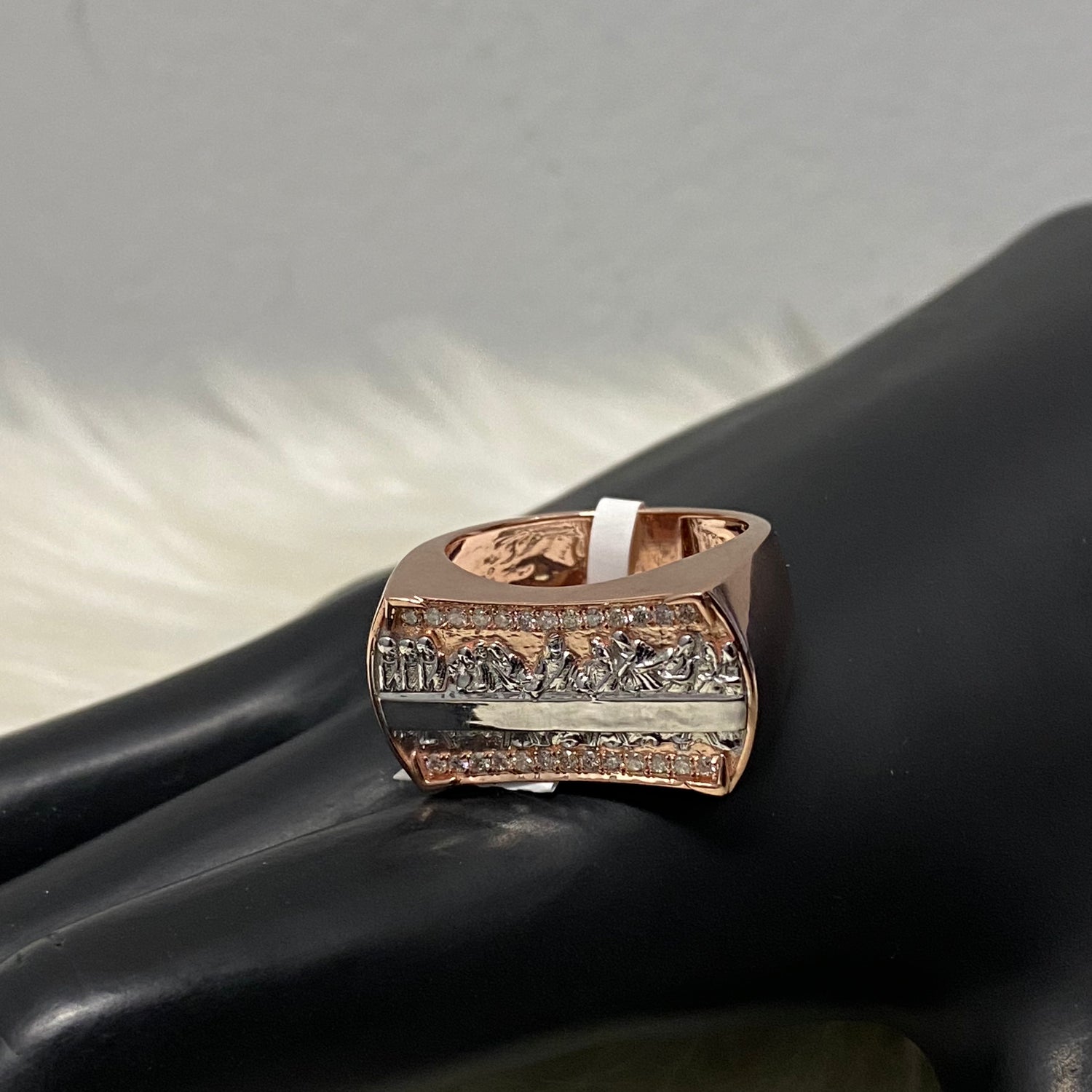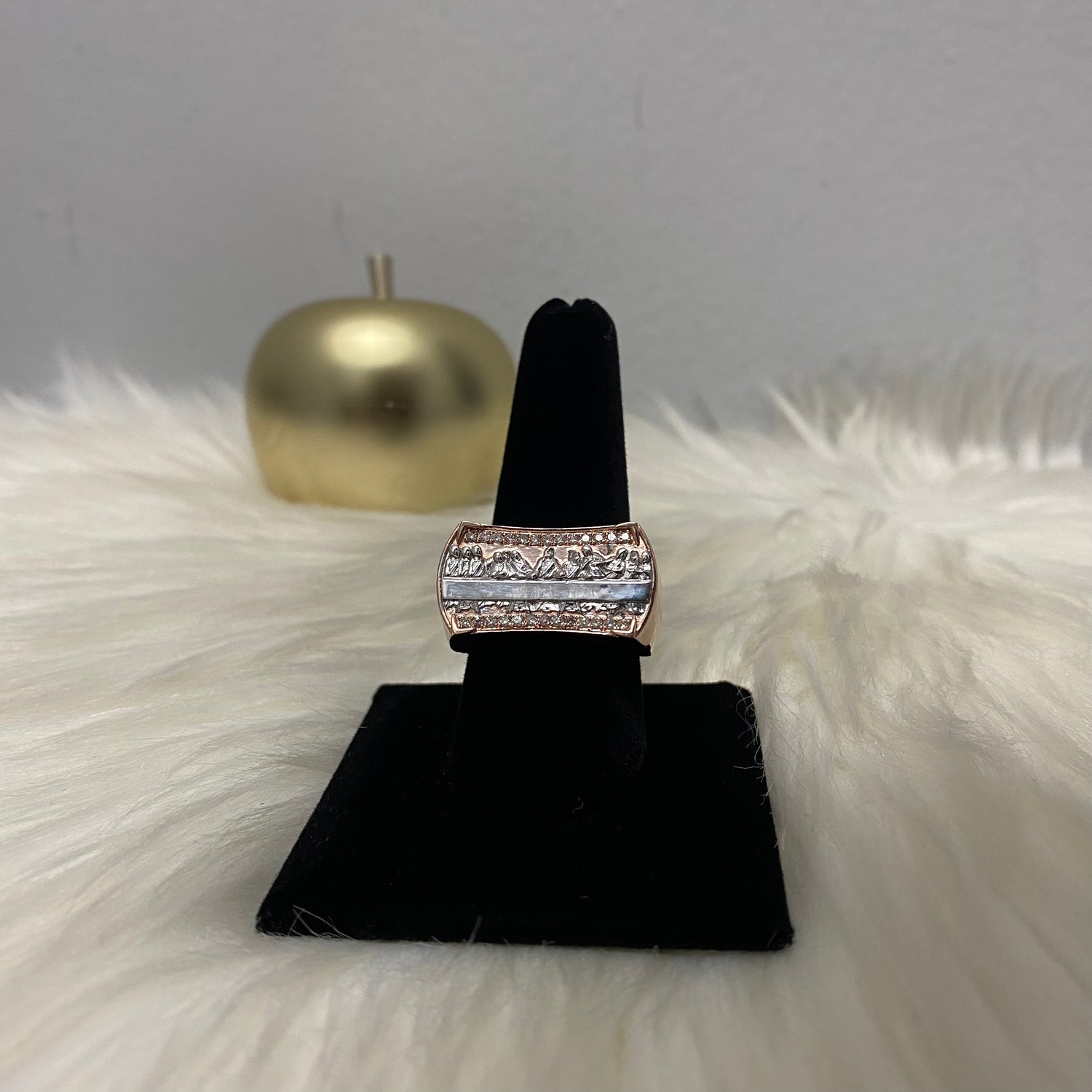 10K Rose-White Gold Diamond Last Supper Ring 0.28Ct Dia / 8.4gr / Size 9