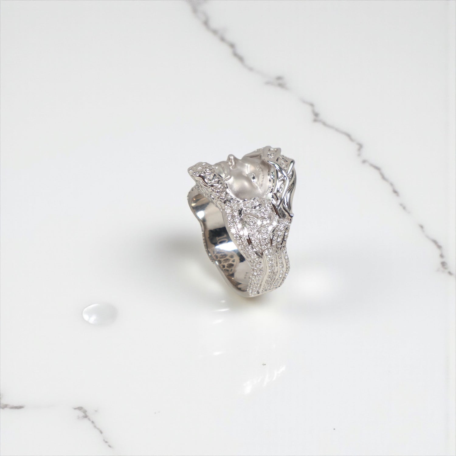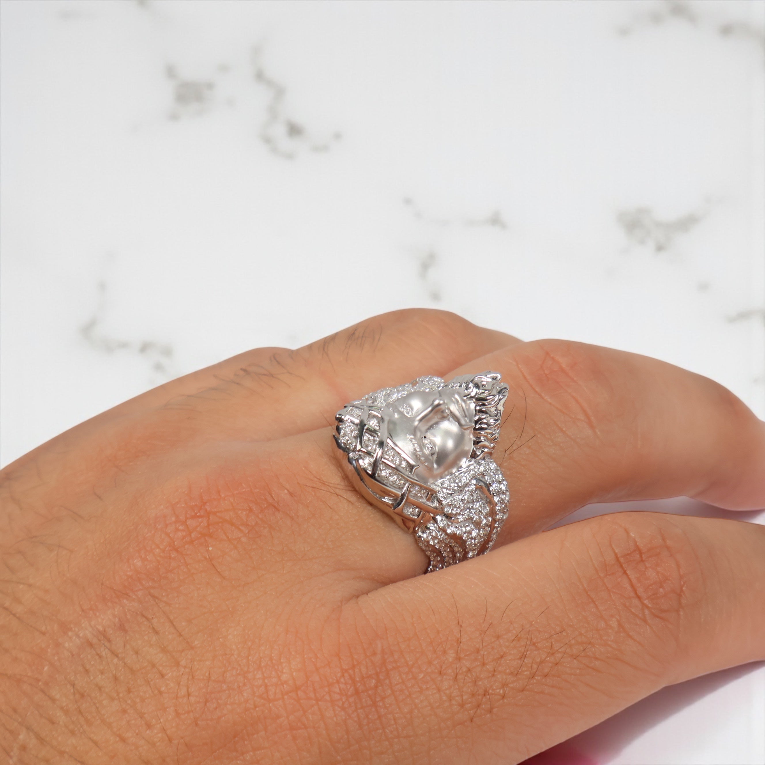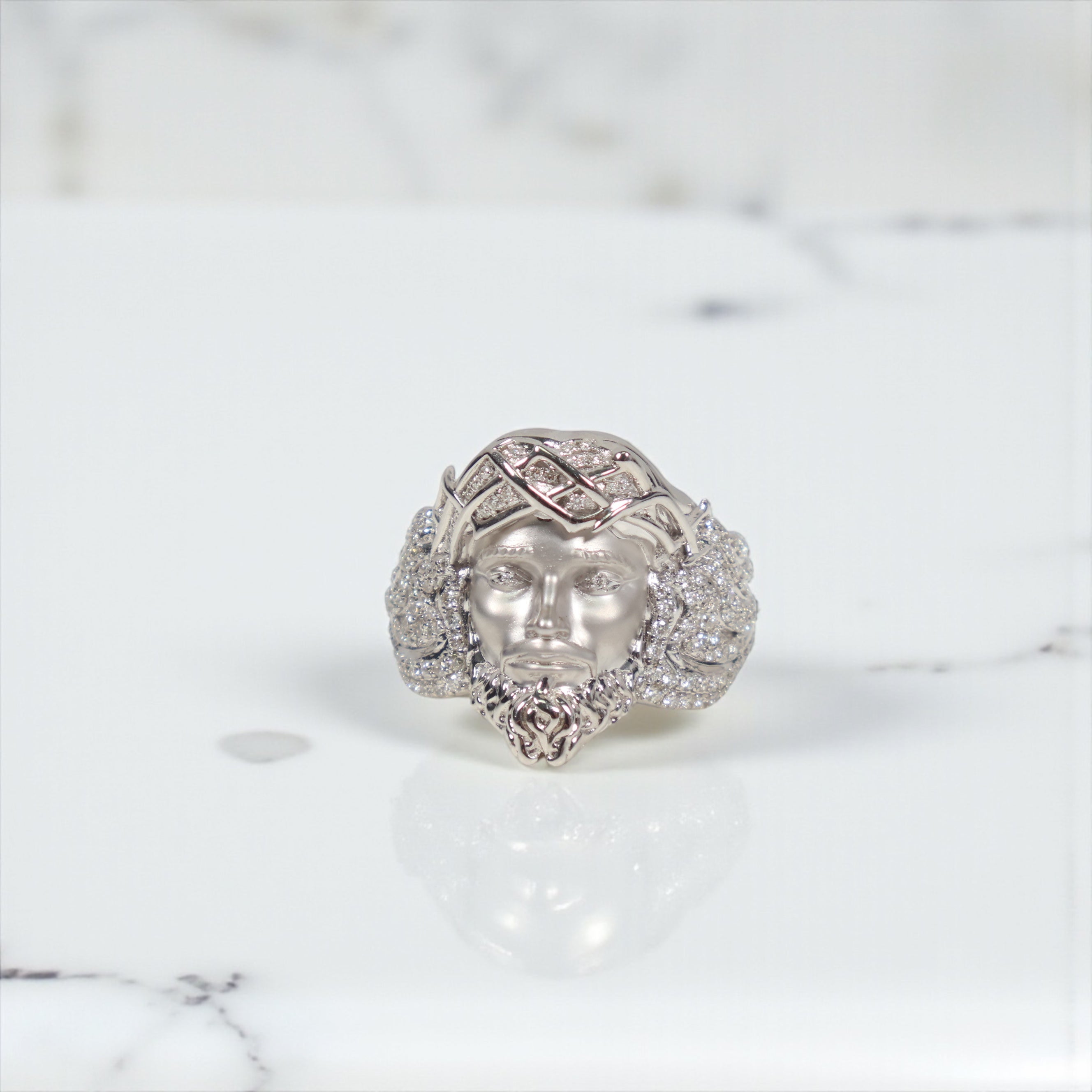 10K WG Diamond Jesus Face Rings / 13.59gr / Sz 9 3/4 / D-1.25Ct