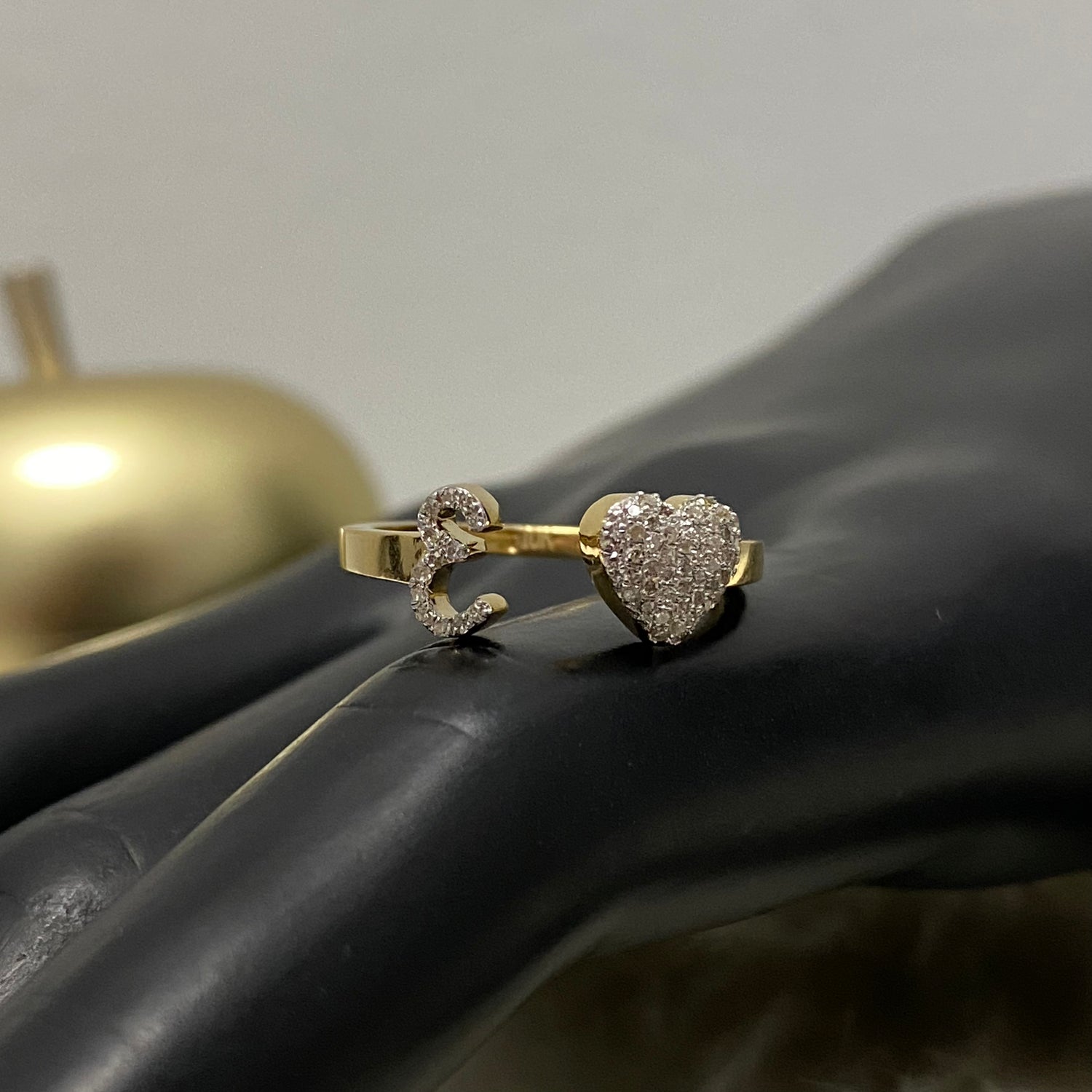 10K Yellow Gold Diamond Heart - Letter E Ring 0.17Ct Dia / 1.6gr / Size 6.5
