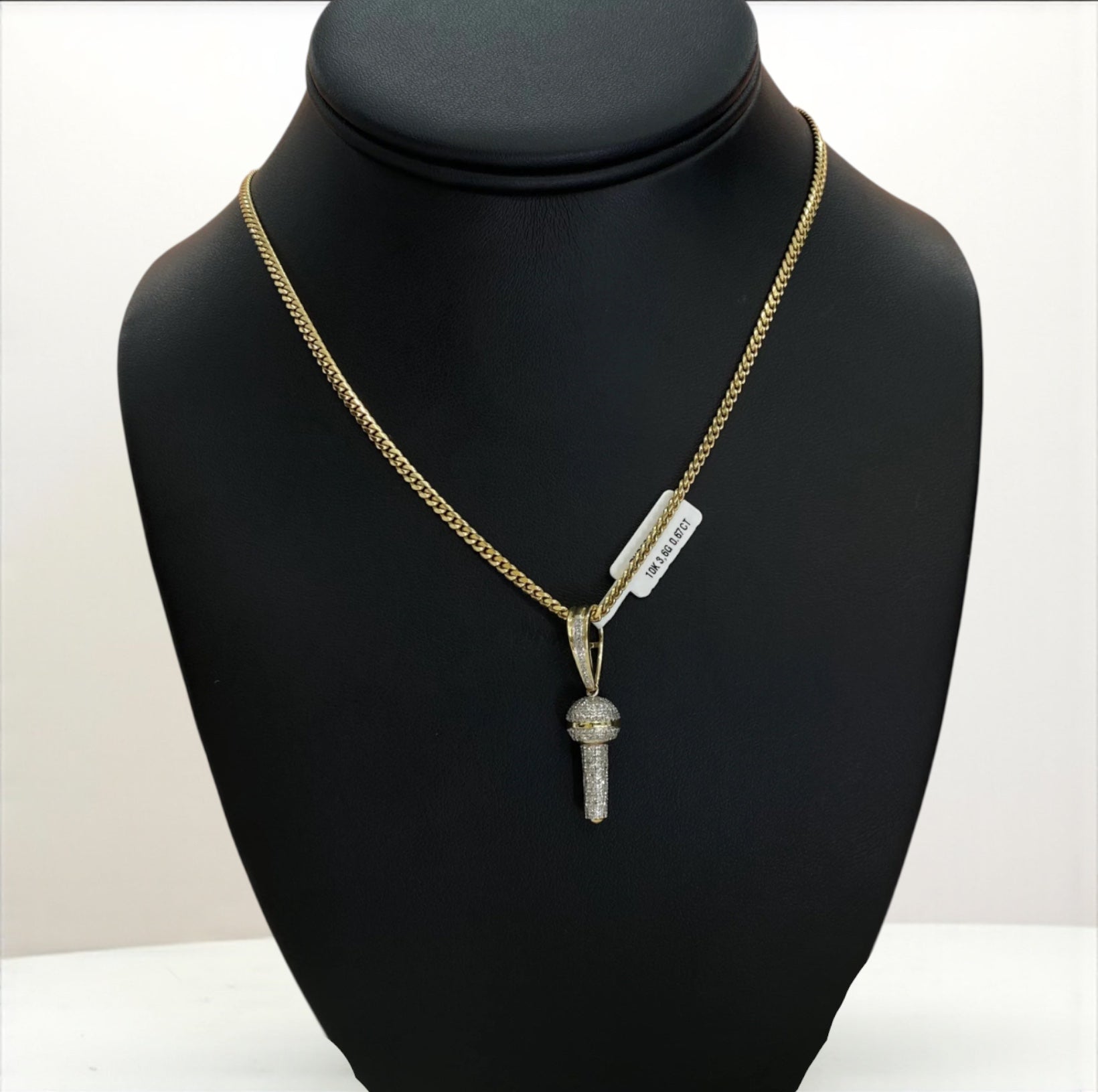 10K Yellow Gold Diamond Microphone Pendant / 0.67Ct Dia / 3.6gr