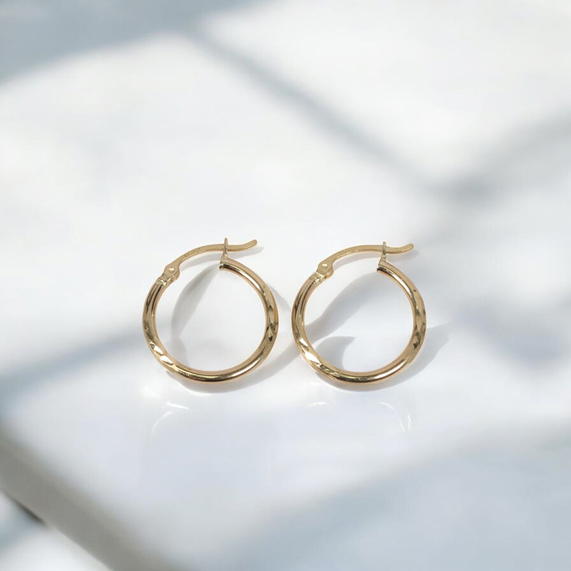 10K YG Luxury Hoop Earrings / 1.27gr / 0.6in /