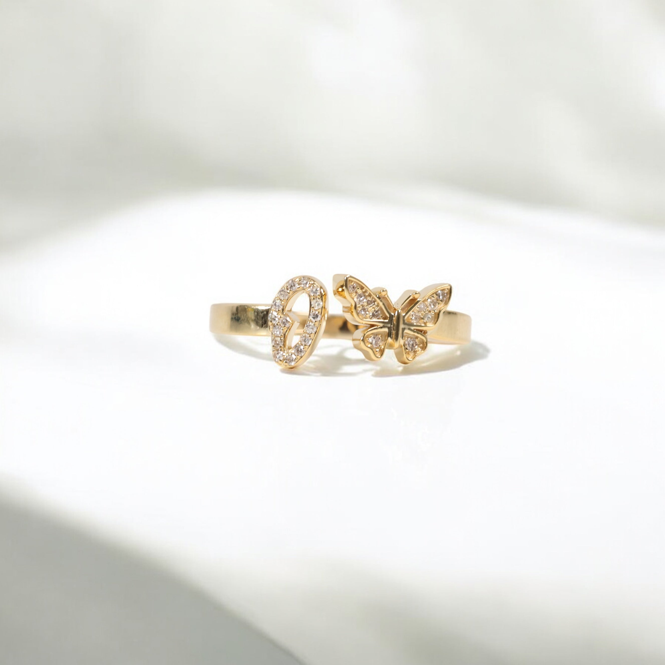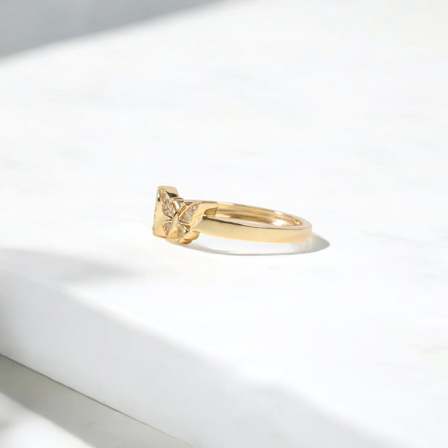 10K YG Diamond Butterfly - Letter O Rings / 2.2gr / Sz 7 / 0.08Wt Dia