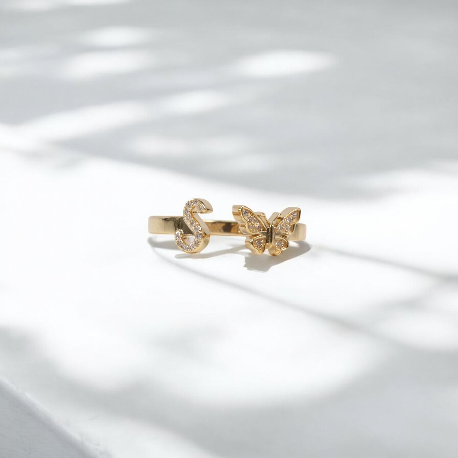10K YG Diamond Butterfly - Letter S Rings / 2,2gr / Sz 7 / 0.07Wt Dia