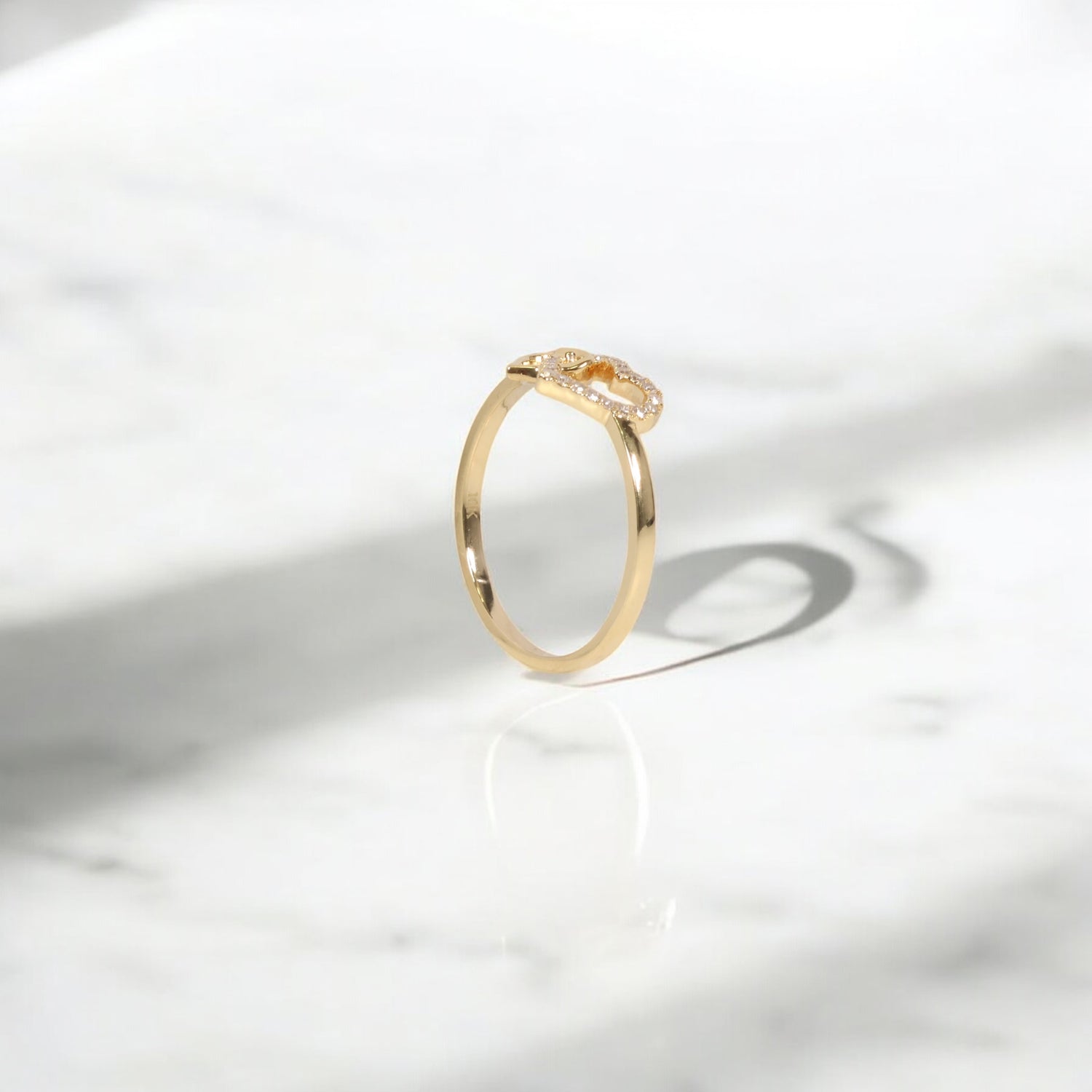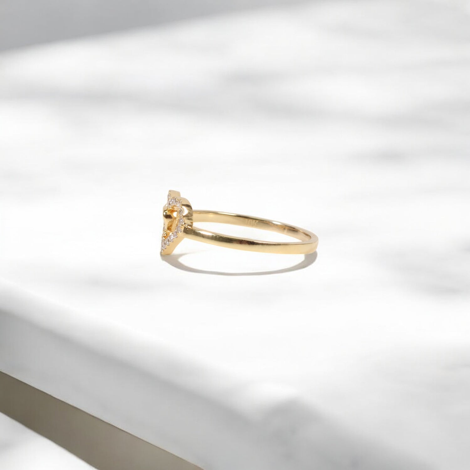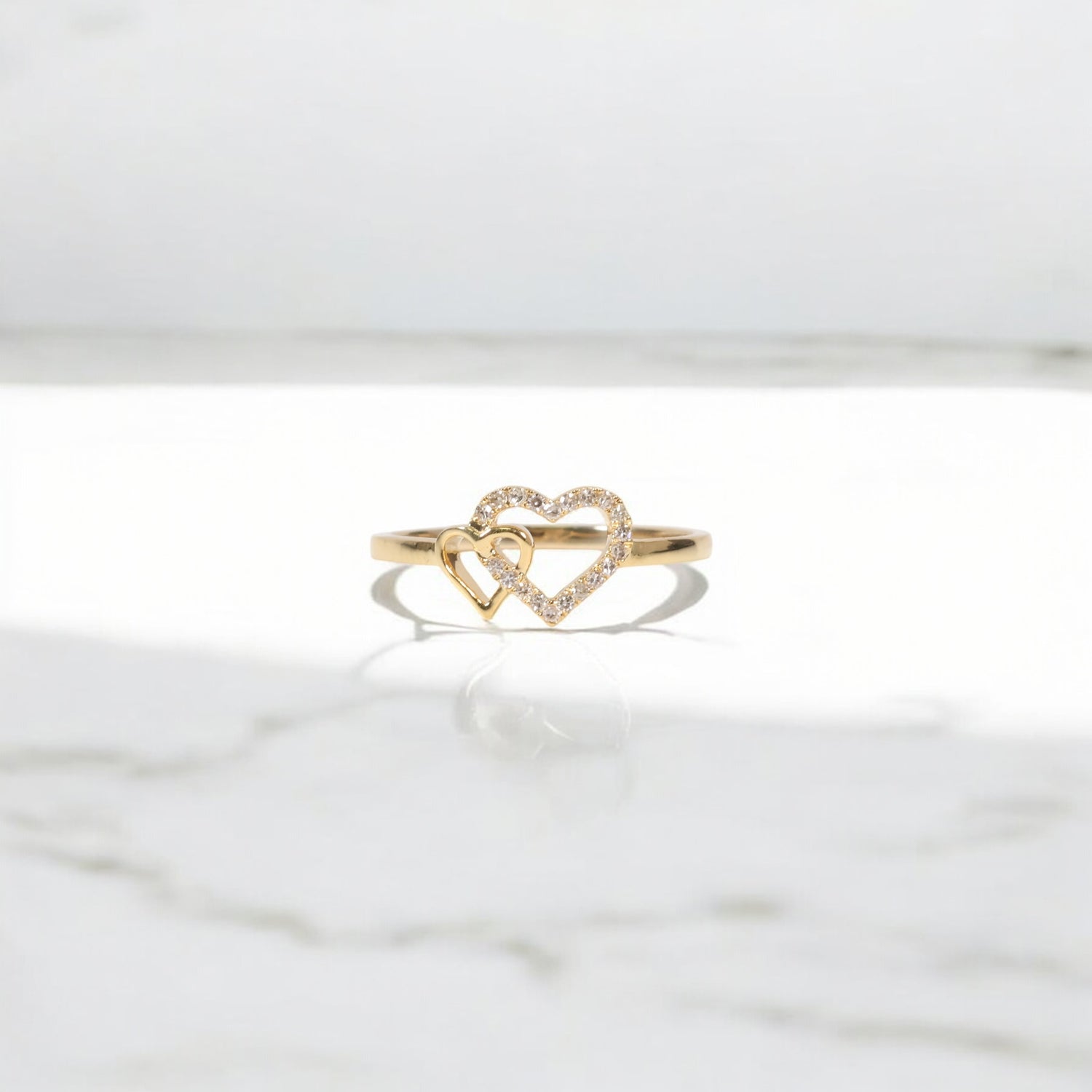 10K YG Diamond Double Heart Rings / 1.35gr / Sz 7 / 0.1Wt Dia