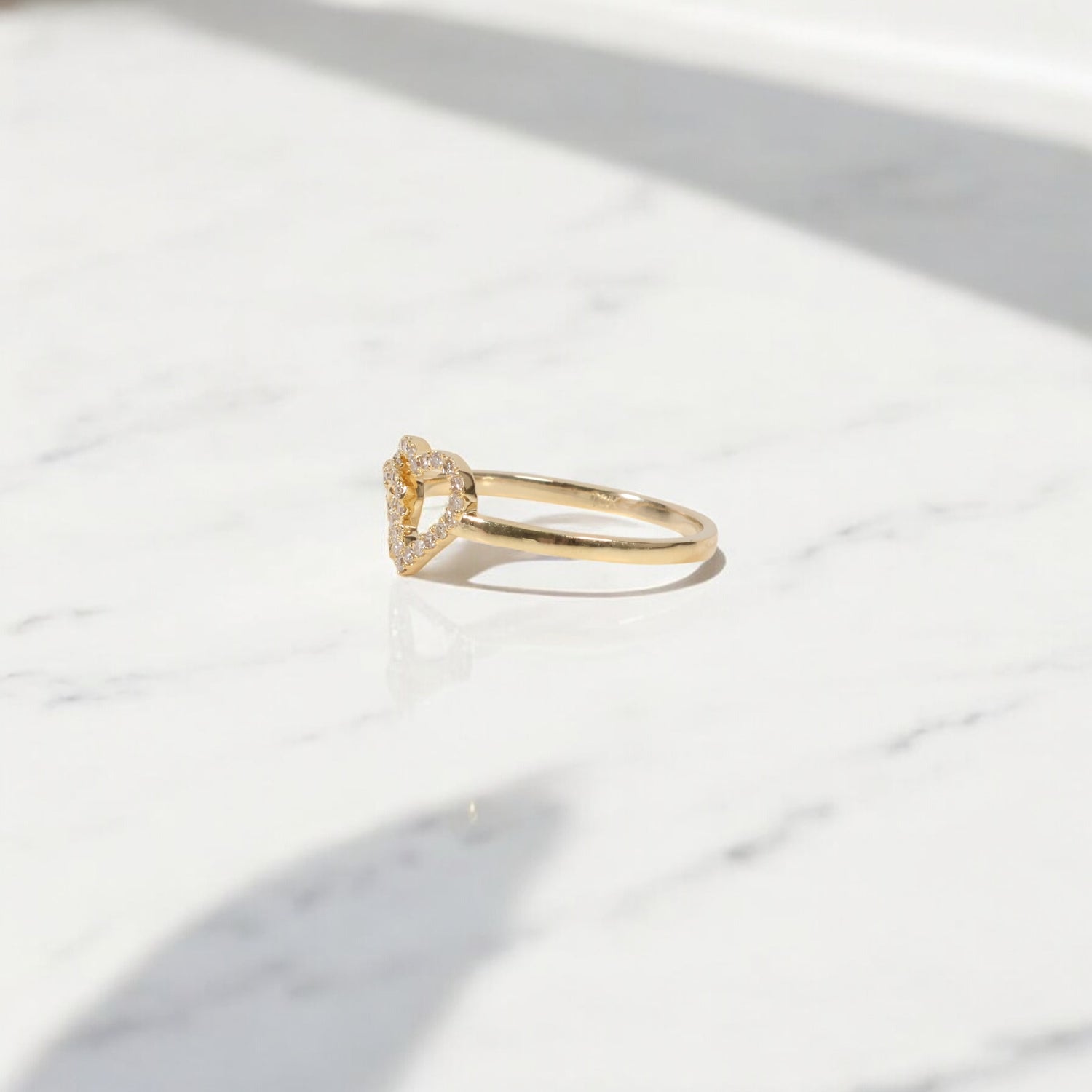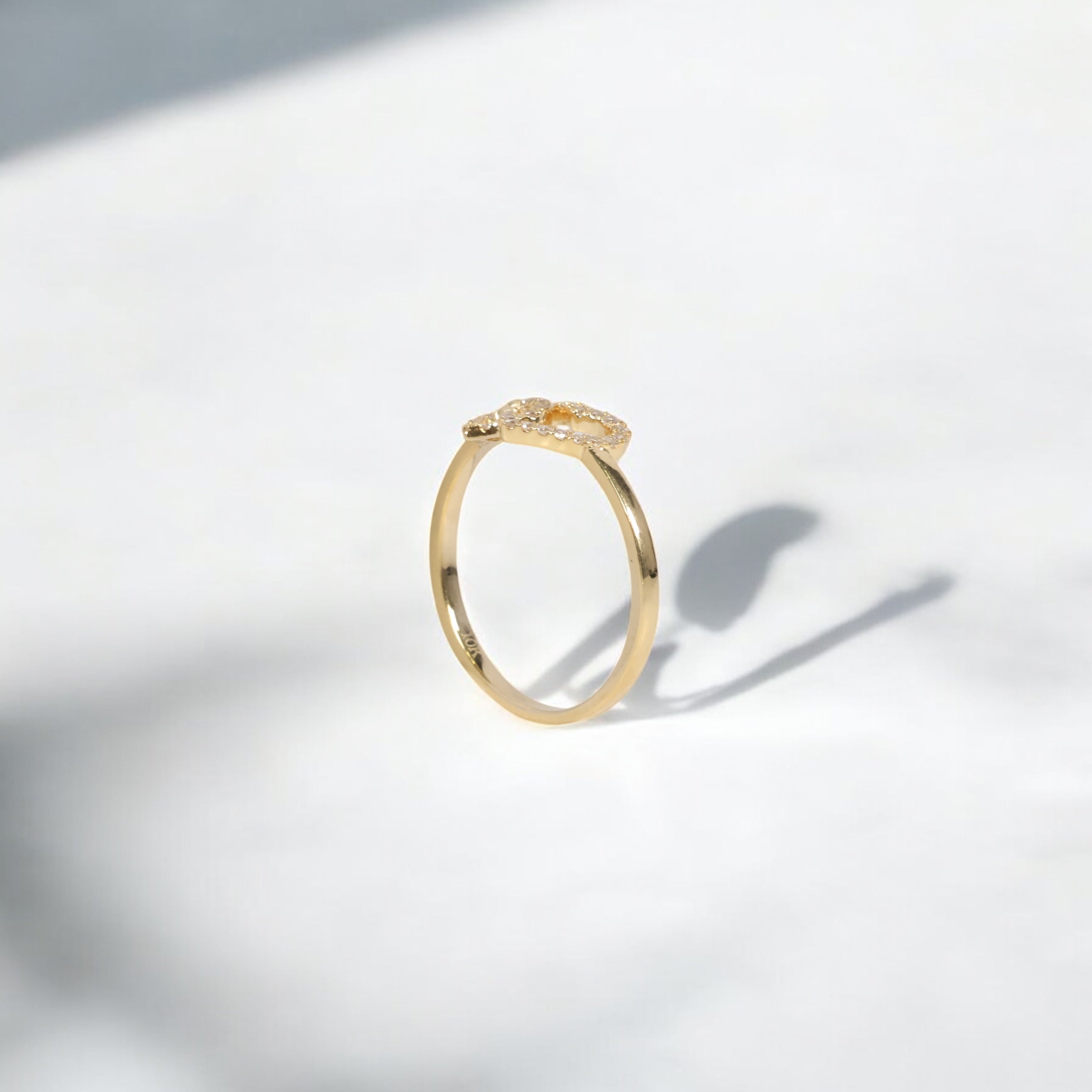 10K YG Diamond Double Heart Rings / 1.37gr / Sz 7 / 0.14Wt Dia