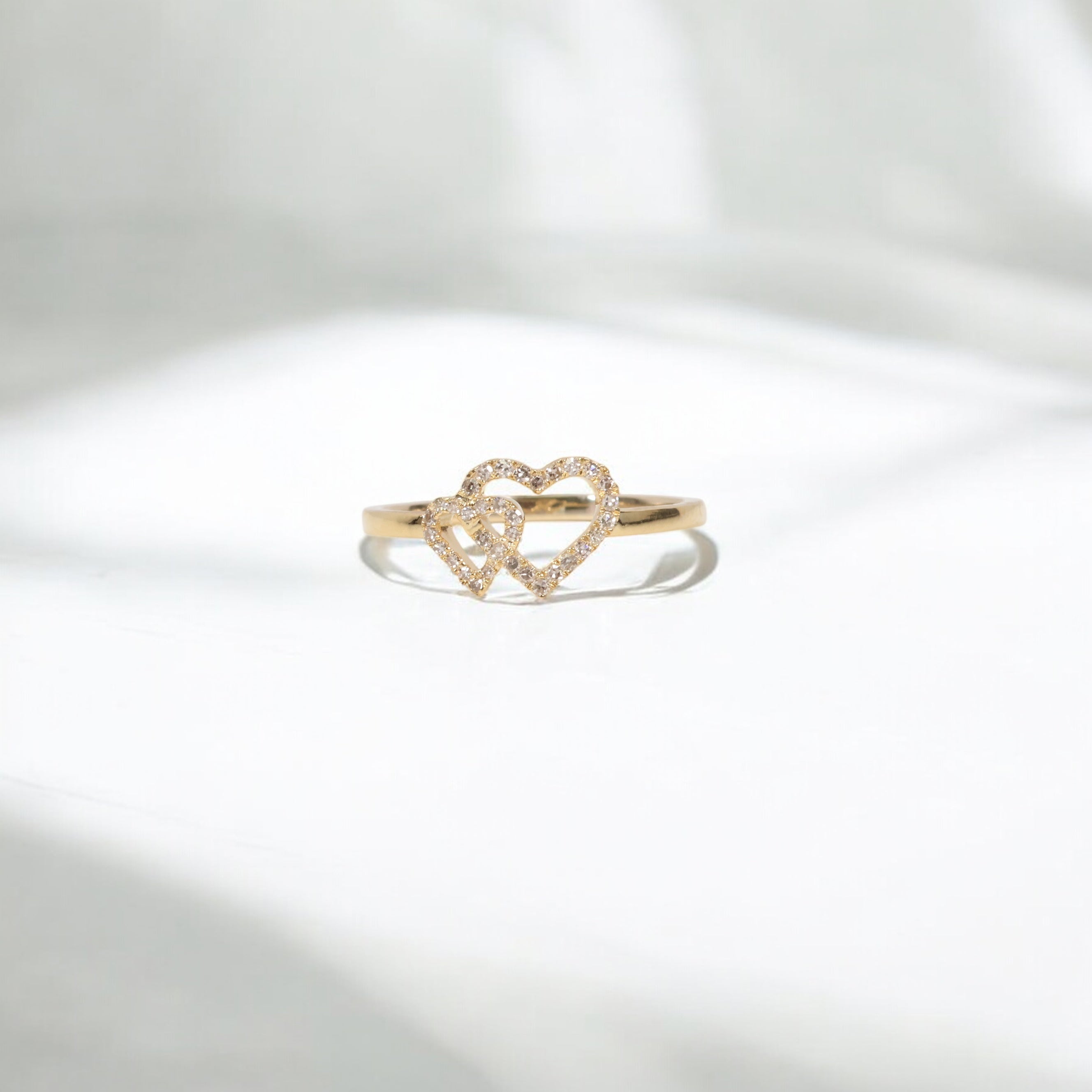 10K YG Diamond Double Heart Rings / 1.38gr / Sz 7 / 0.14Wt Dia