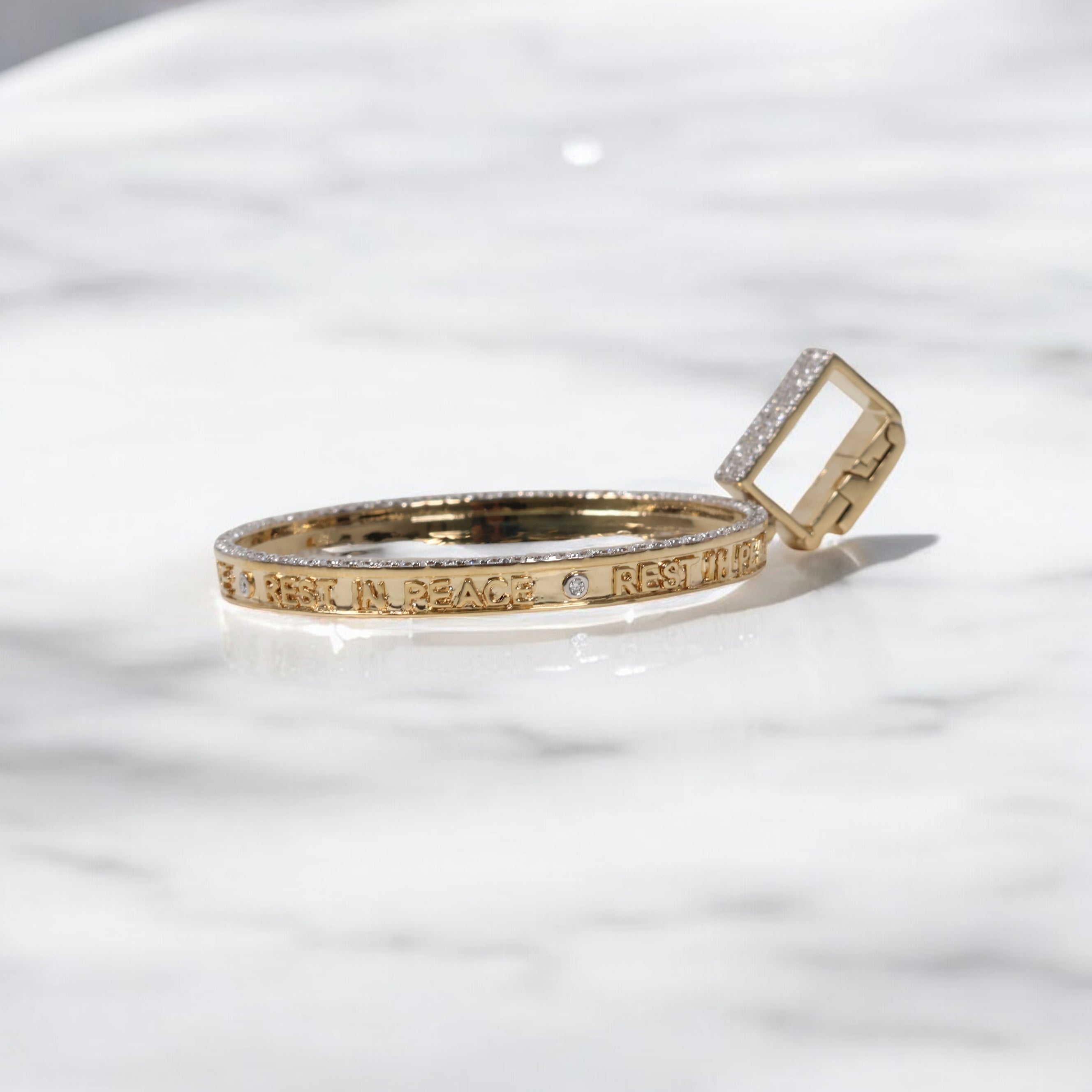 10K YG Diamond Memoral Pendant Pendant / 29.37gr / 2.7in / 2.56Wt Dia