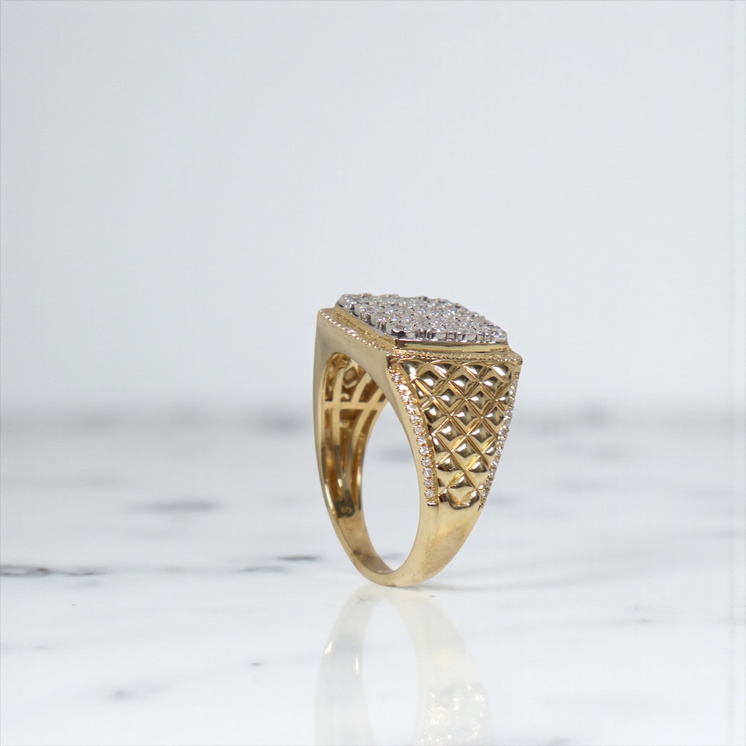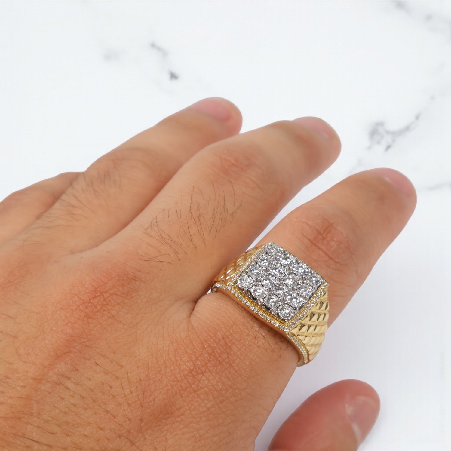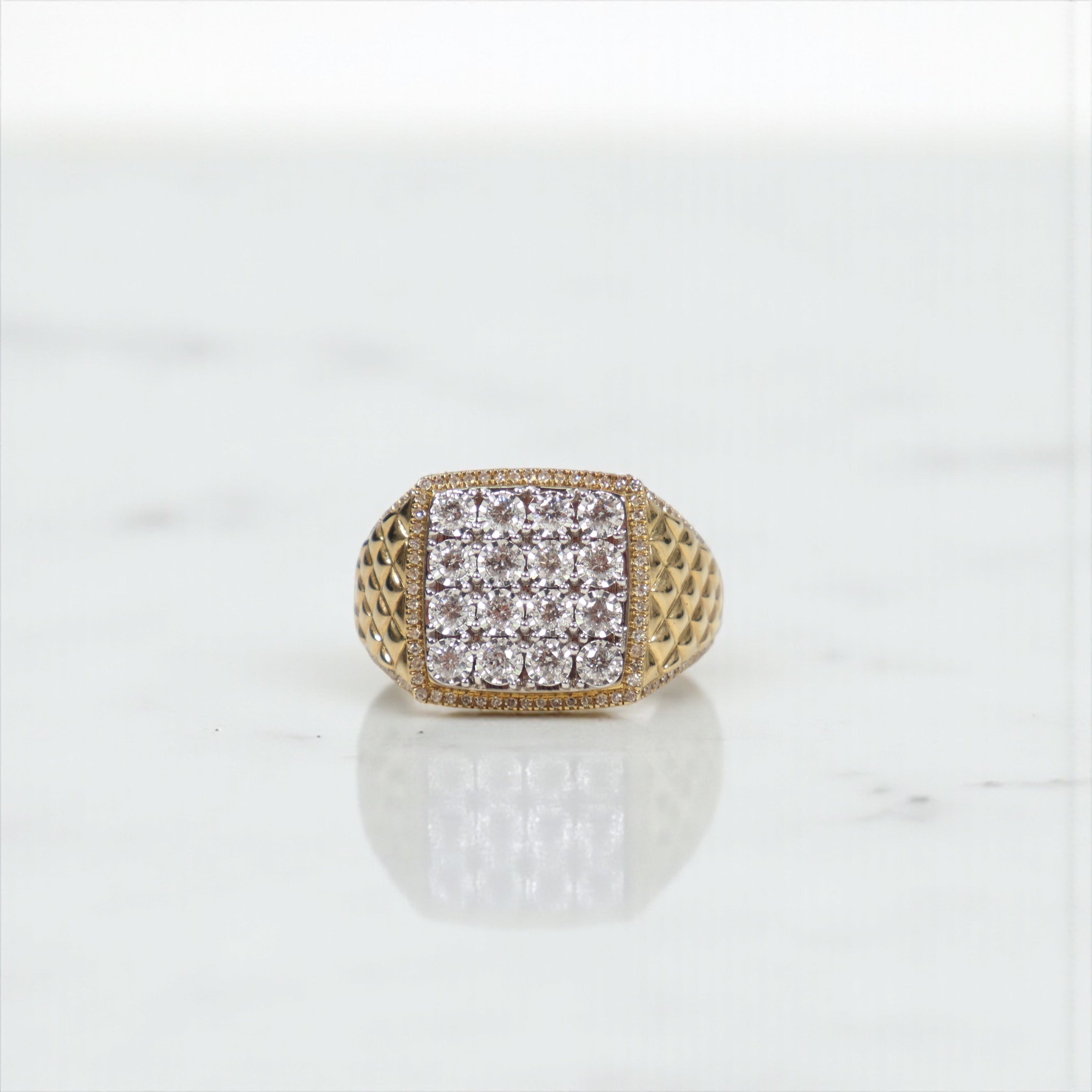 10K YG Diamond Square Luxury Rings / 6.87gr / Sz 10.5 / D-0.9Ct