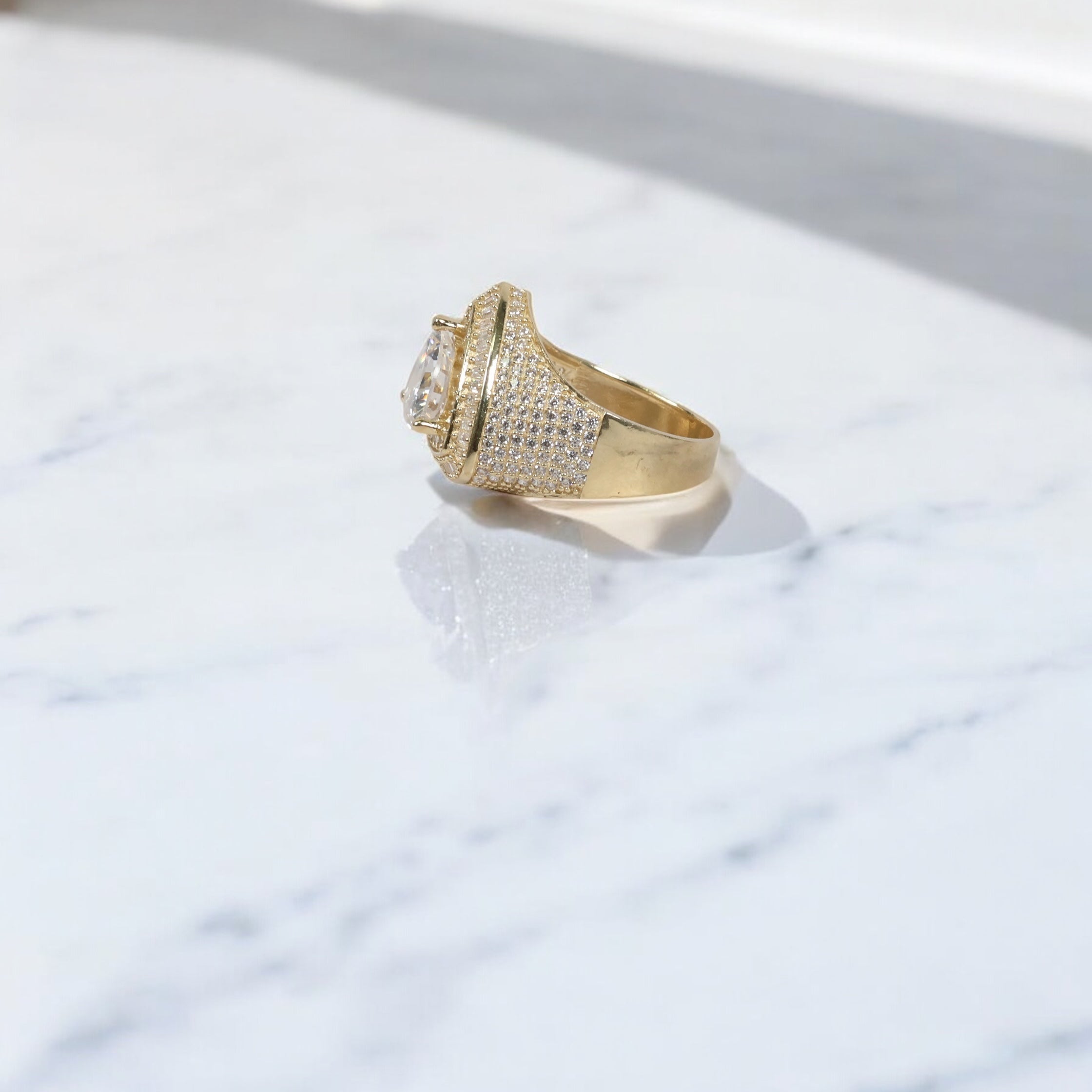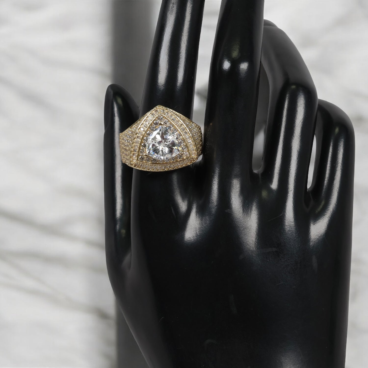 10K YG Luxury Triangle Rings / 8.38gr / Sz 11 / White Zircons