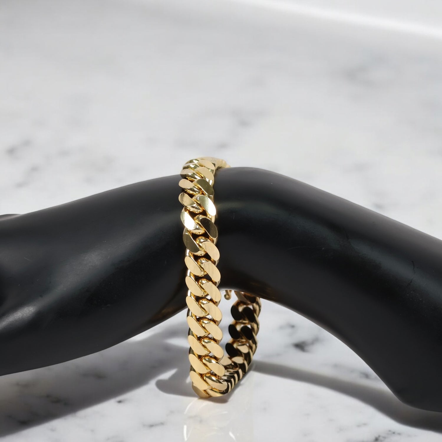 10K YG Micro Cuban Links Bracelet / 63.31gr / 10.3mm / 8 1/4in /