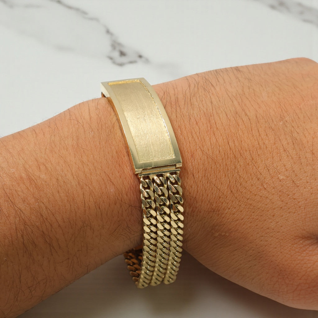 10K YG Name Plate 3 Micro Cuban Links Bracelet / 50.5 / 15mm / 8.5in /
