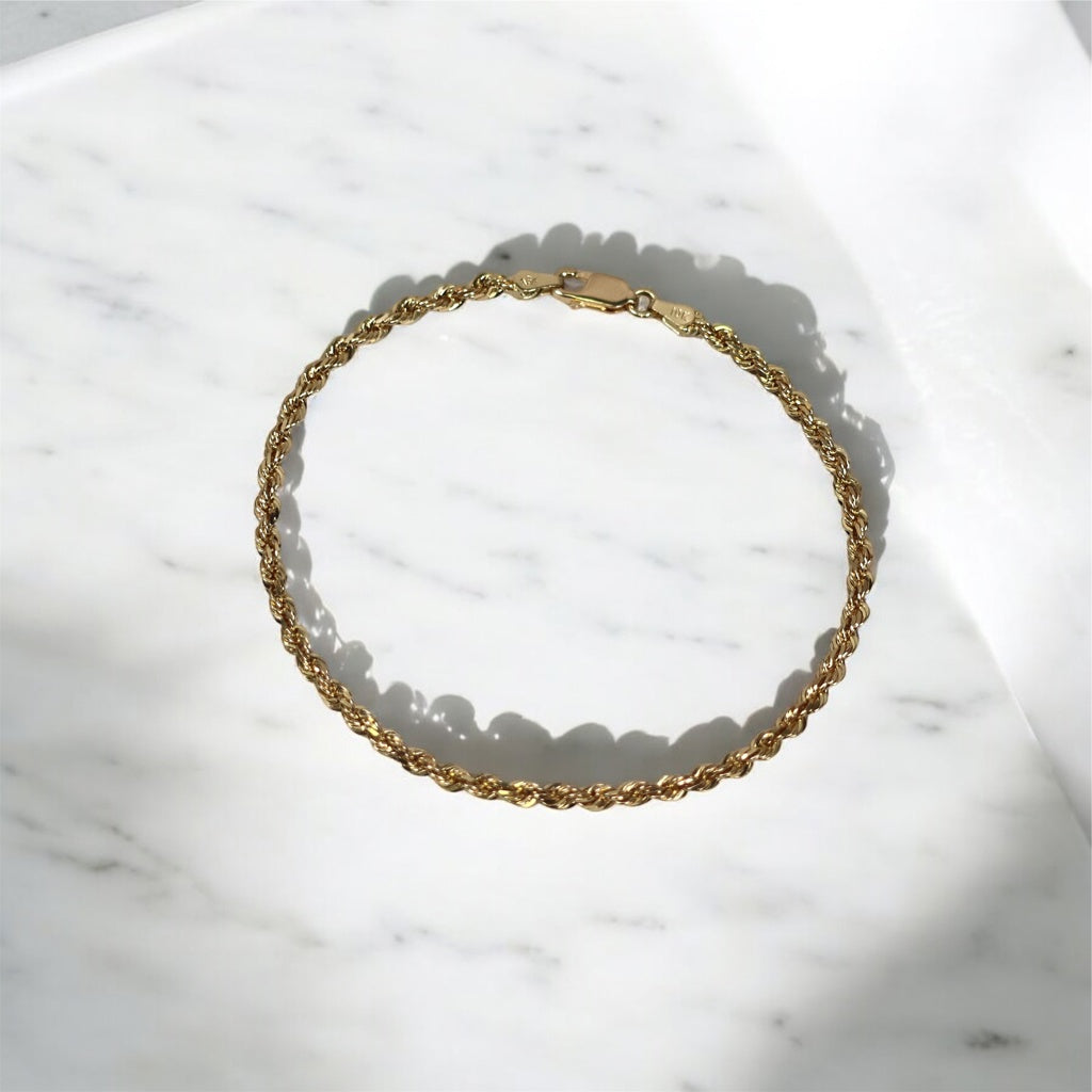 10K YG Rope Bracelet / 5.83 / 3mm / 8in