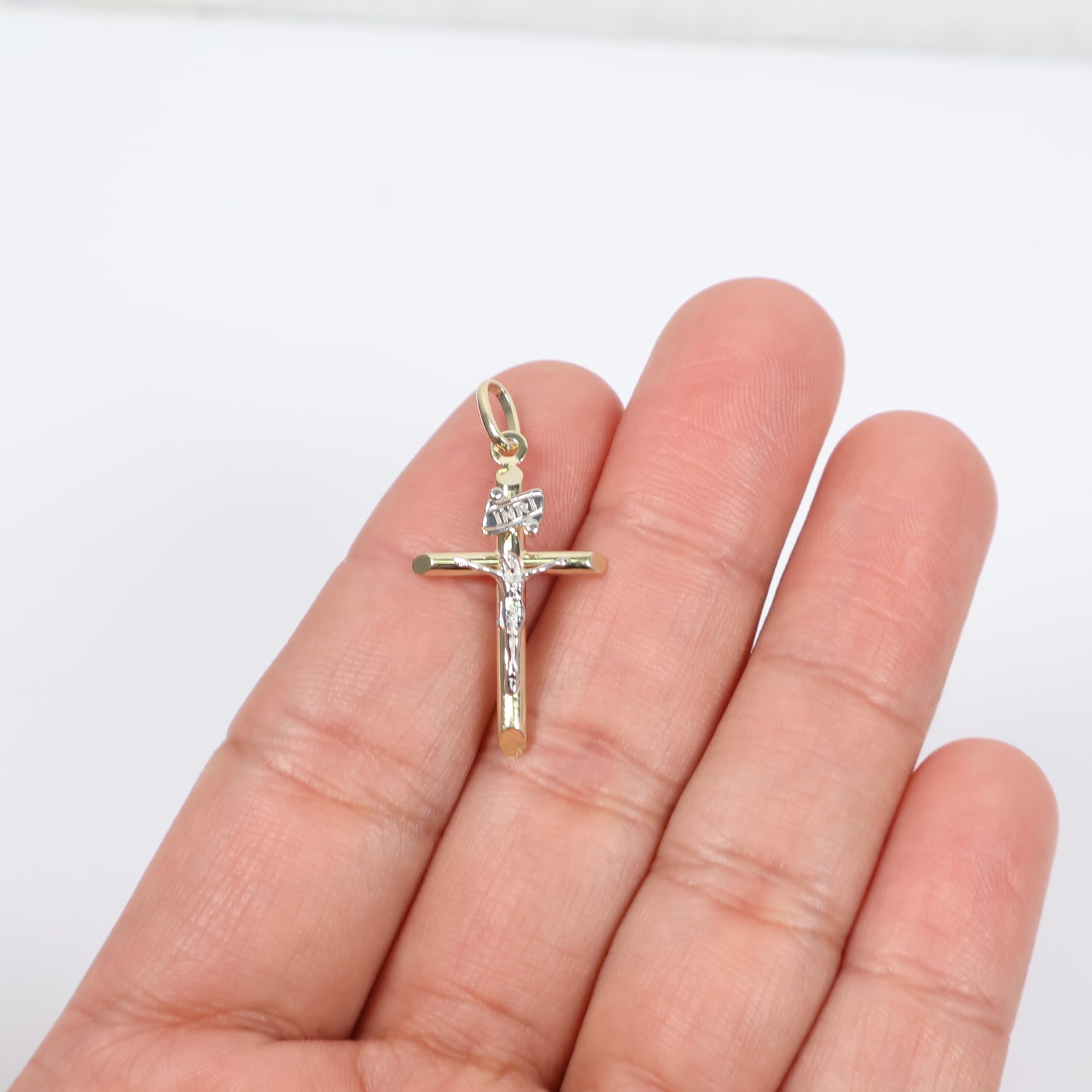 14K 2 Tone Crusifix Pendant / 1.61gr / 1in /