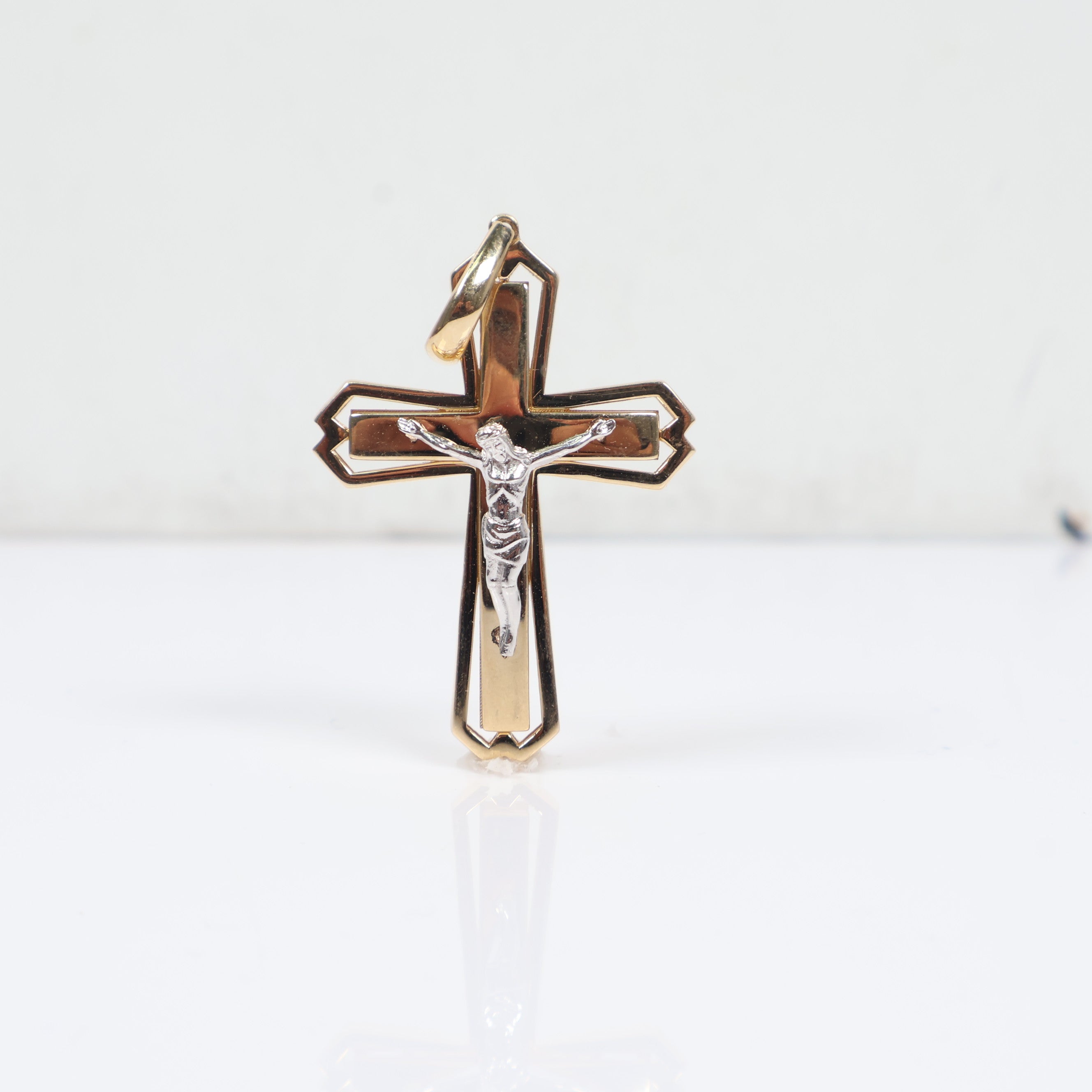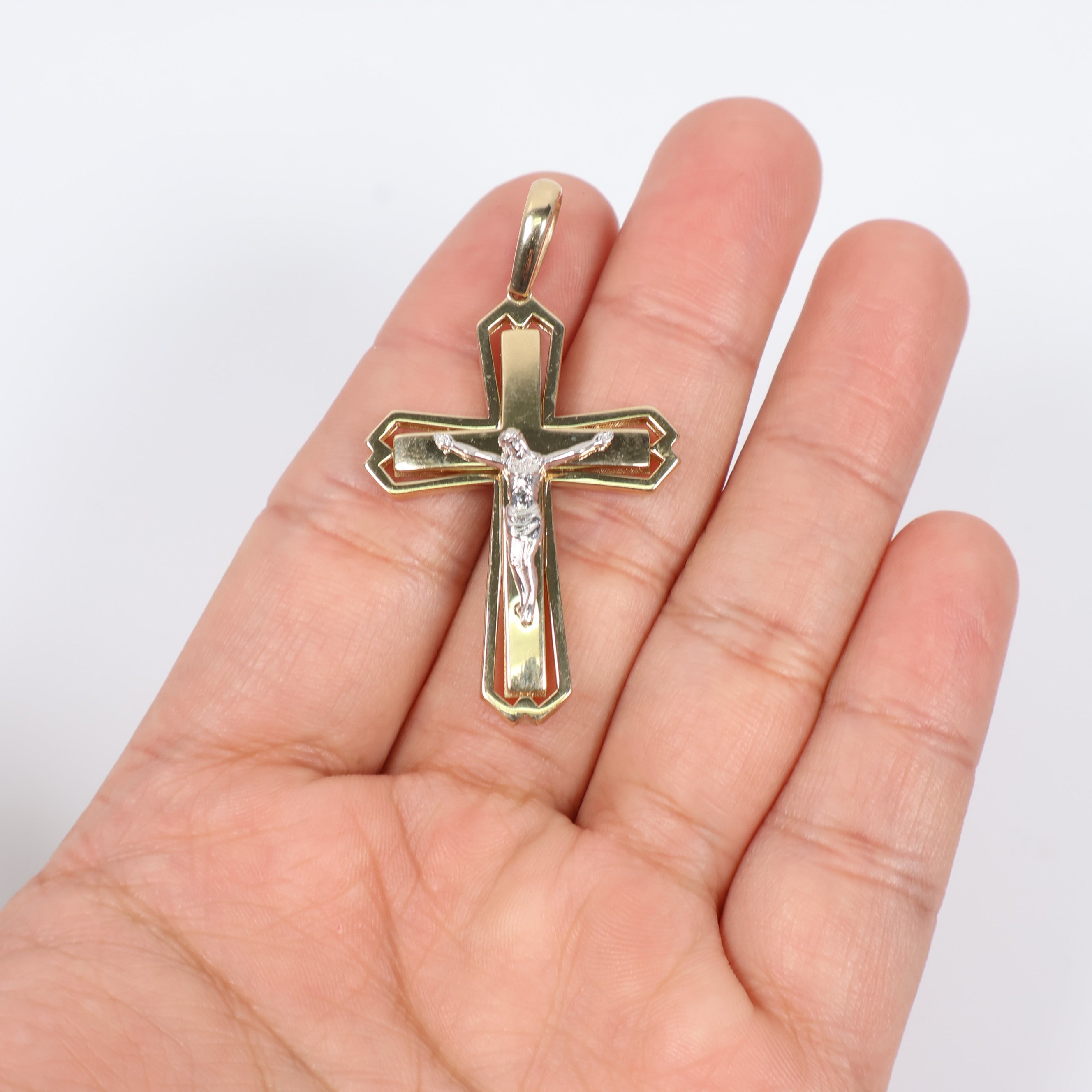 14K 2 Tone Crusifix Pendant / 5.45gr / 1.6in /