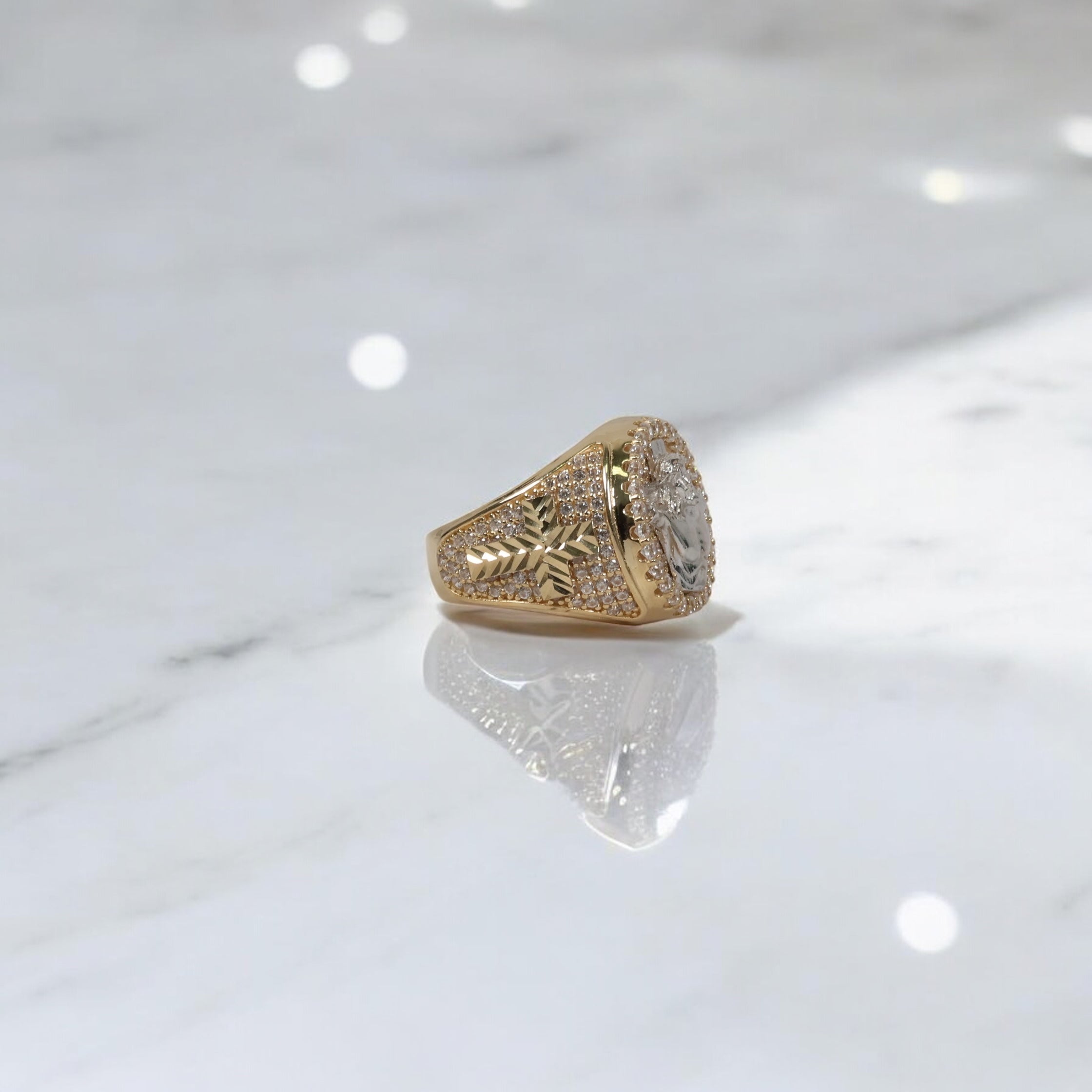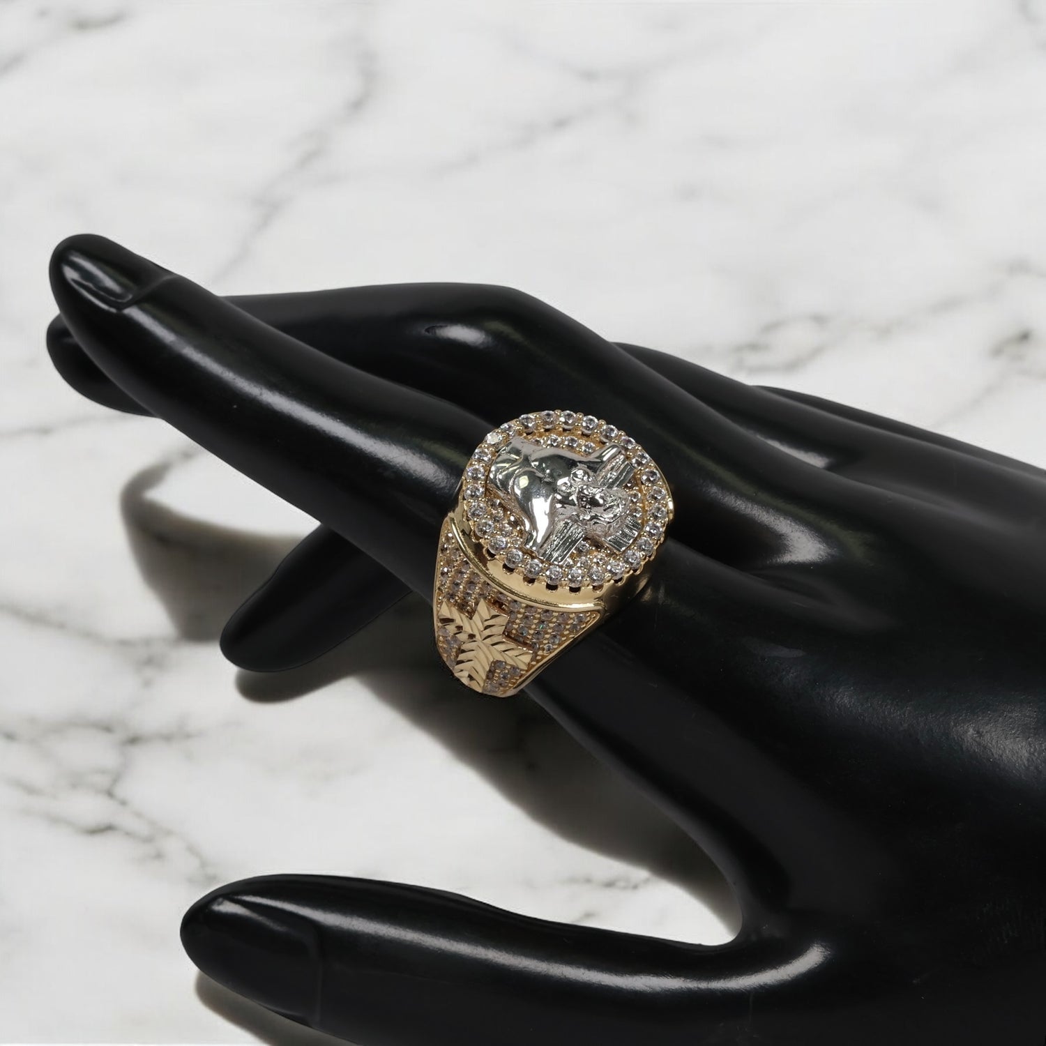 14K 2 Tone Crusifix Rings / 9.38gr / Sz 9 3/4 / White Zircons