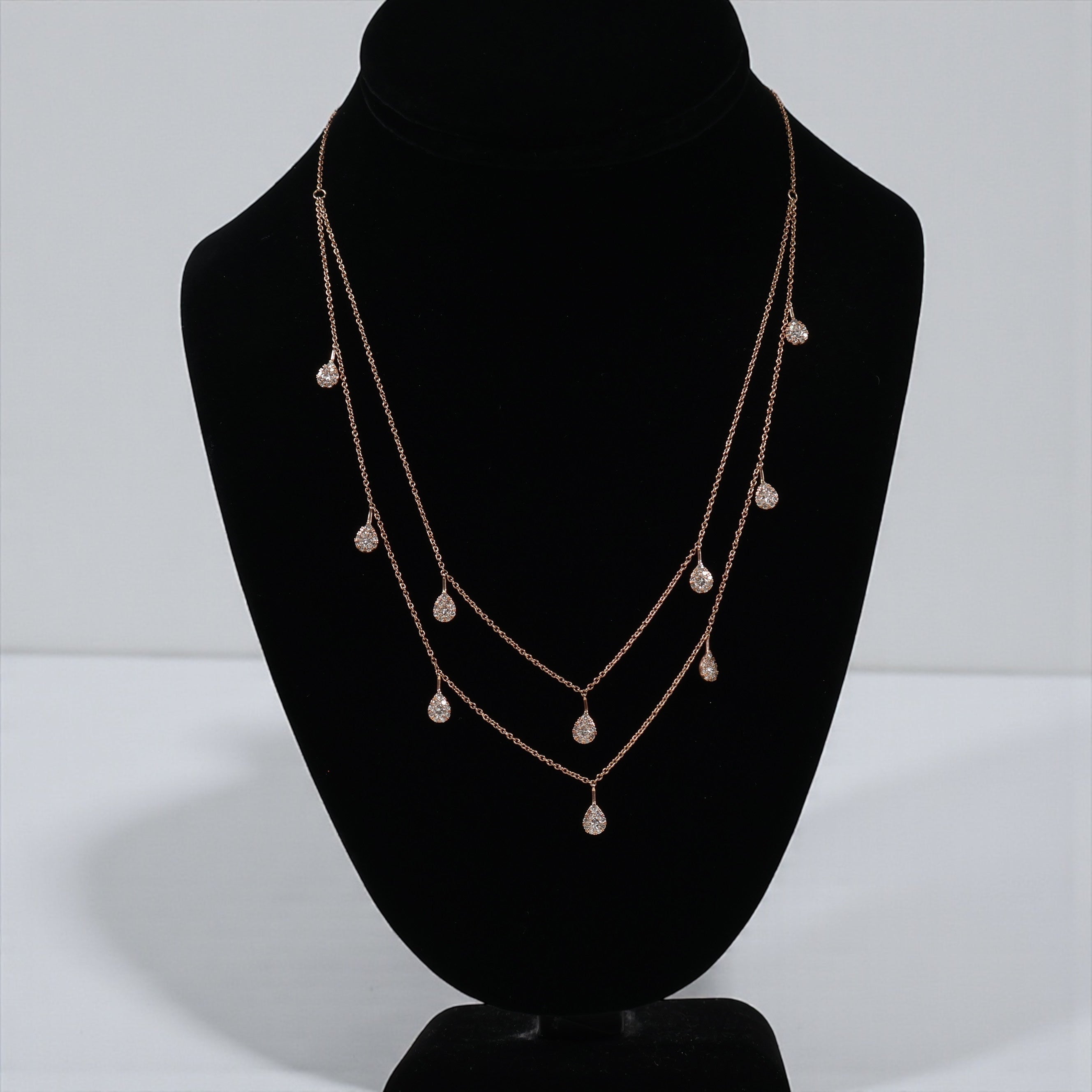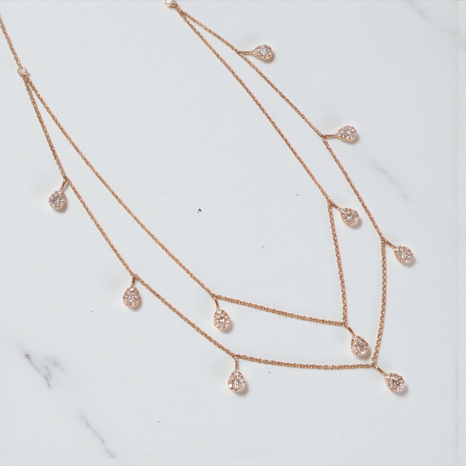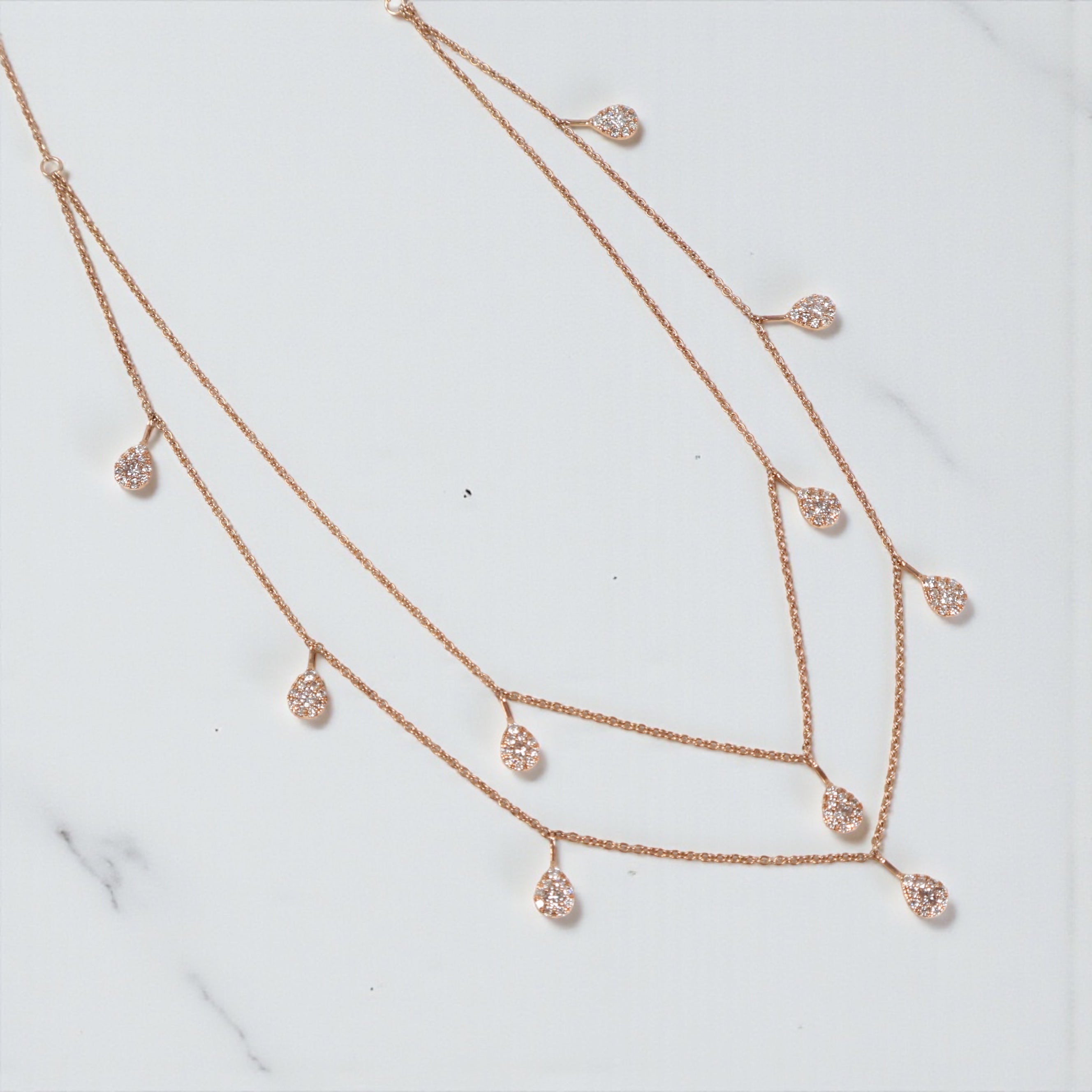 14K RG Diamond Double With Teardrop Pendants Chain / 5.75gr / 1.2mm / 18in-20in / D-0.90Ct