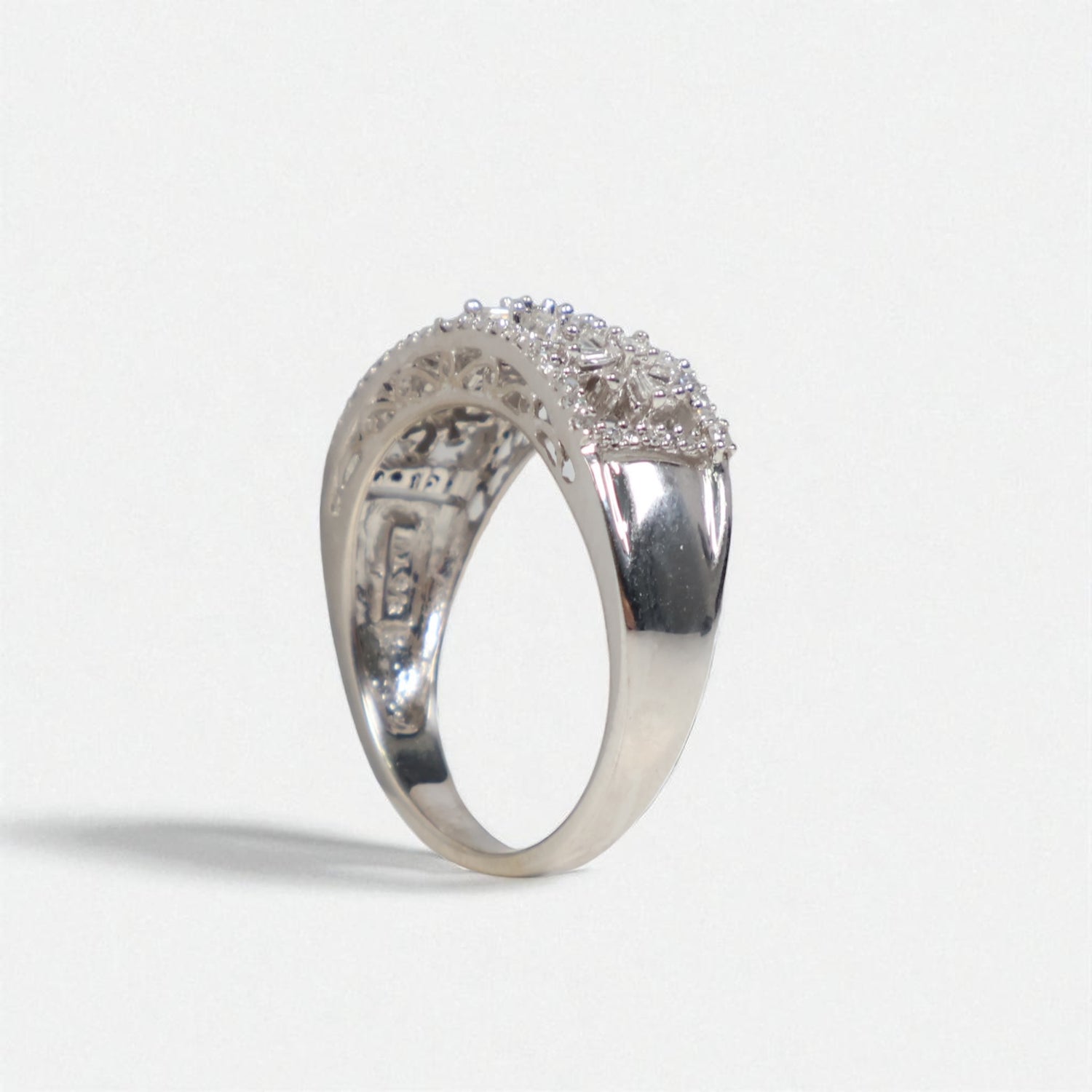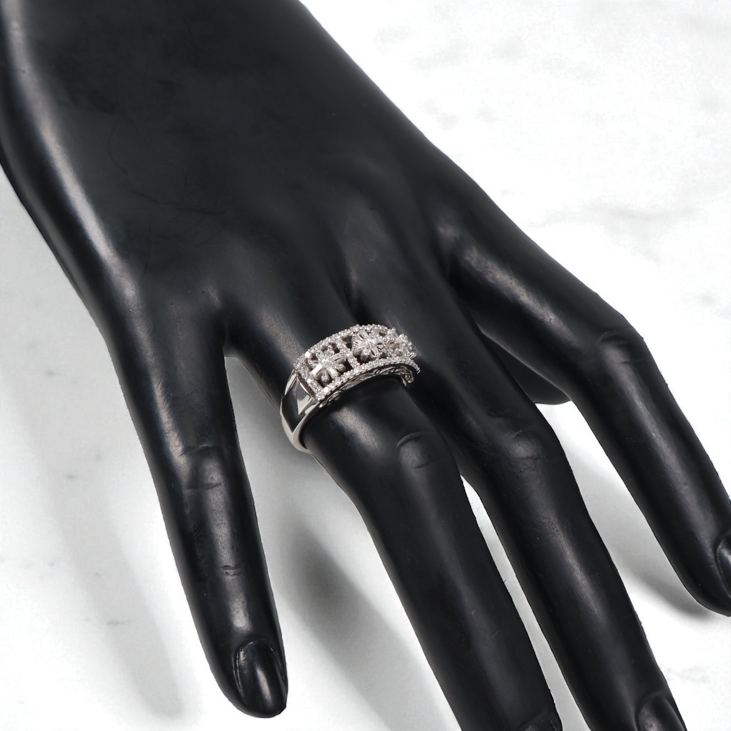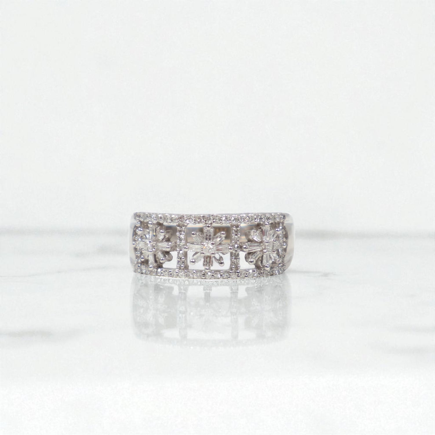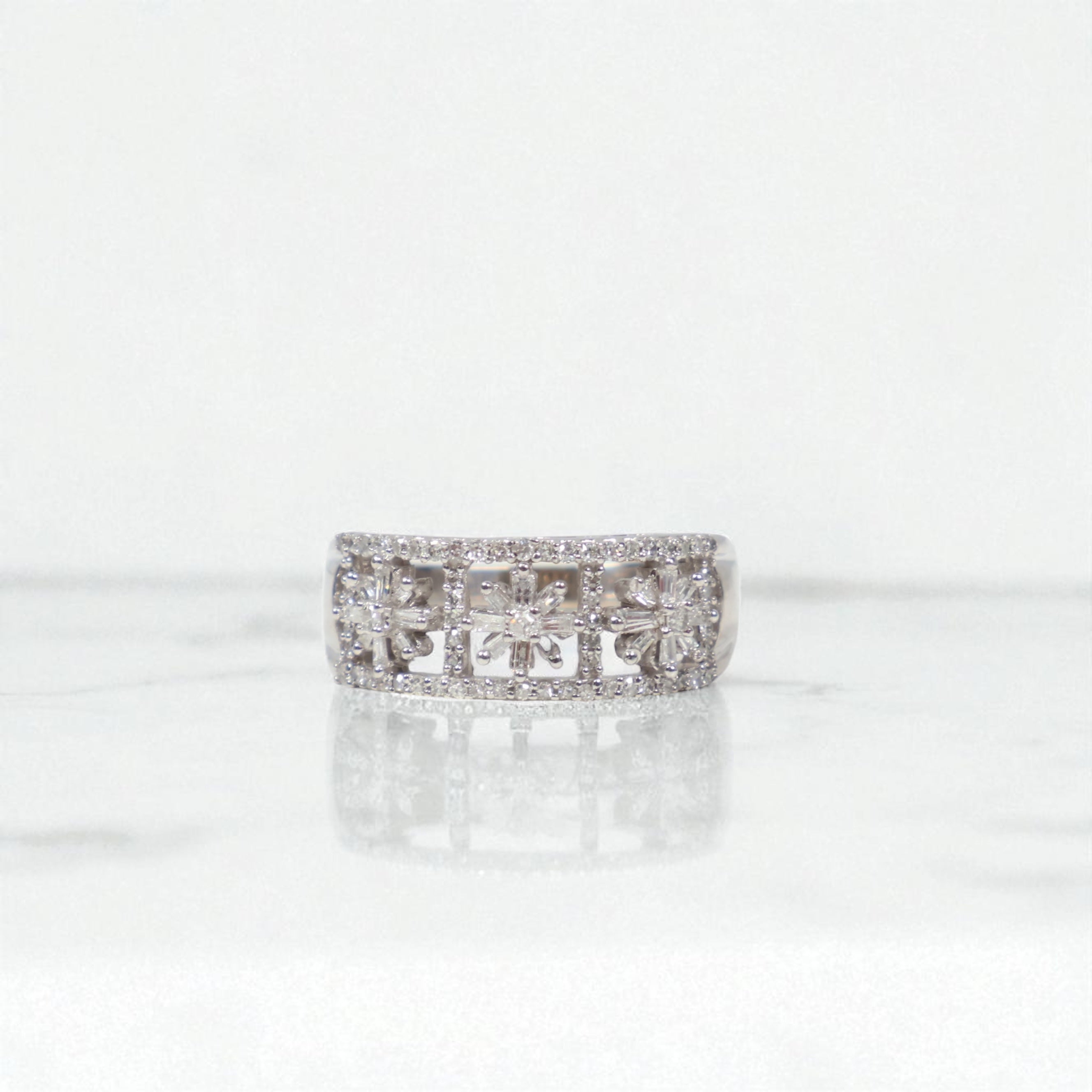 14K WG Diamond Flowers Rings / 4.64gr / Sz 7 / Wt Dia