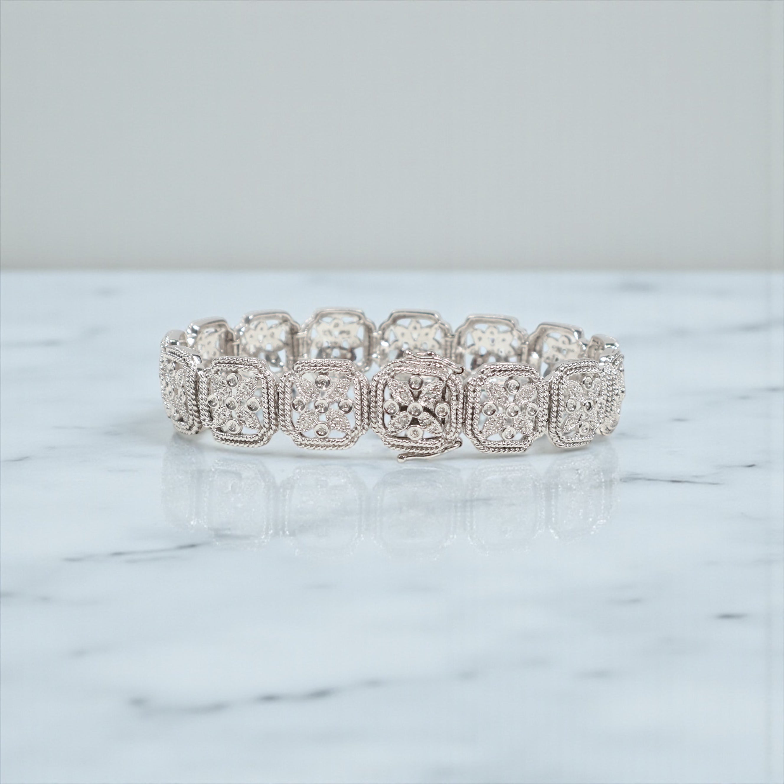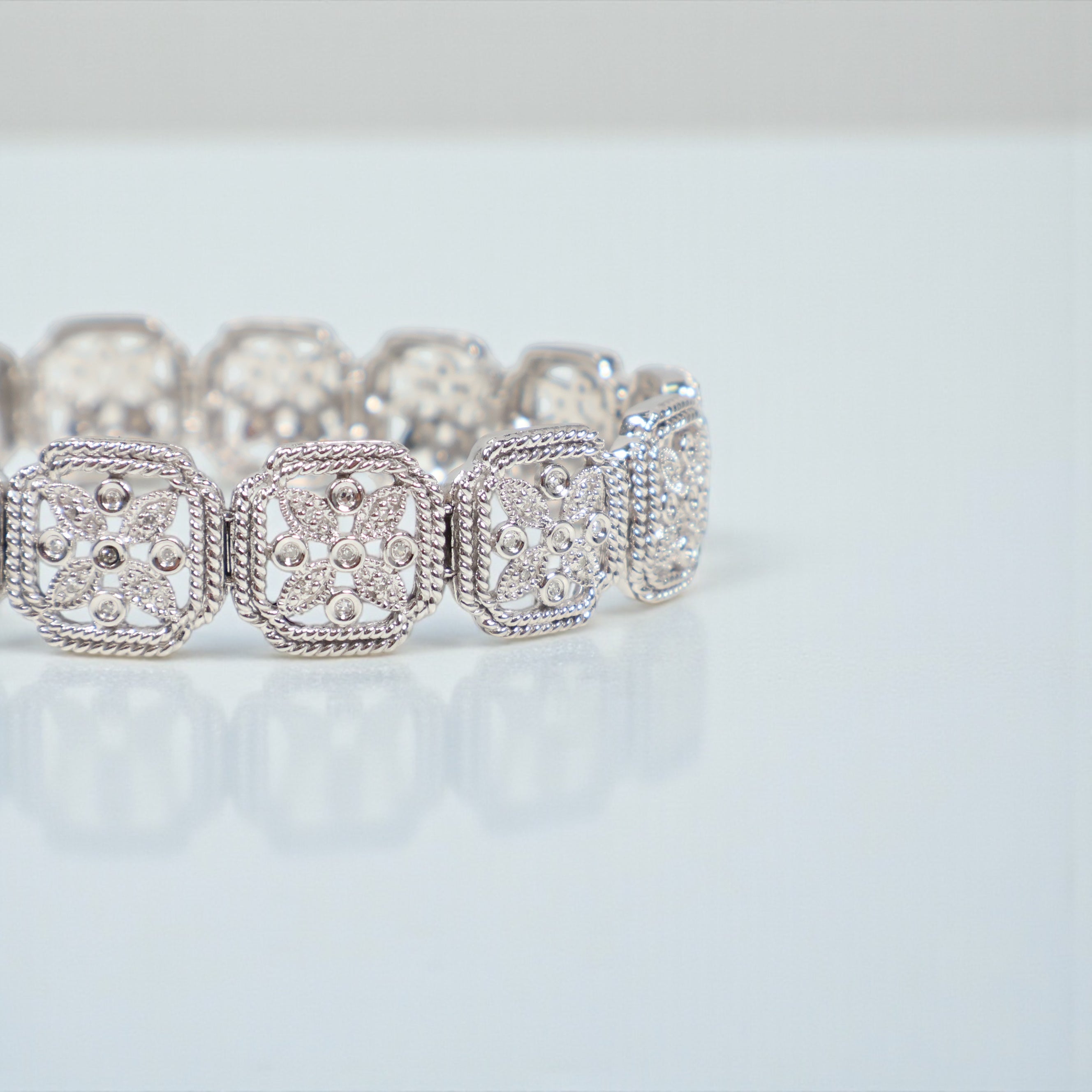 14K WG Diamond Luxury Flowers Bracelet / 26.71gr / 13mm / 7.5in / D-0.61Ct