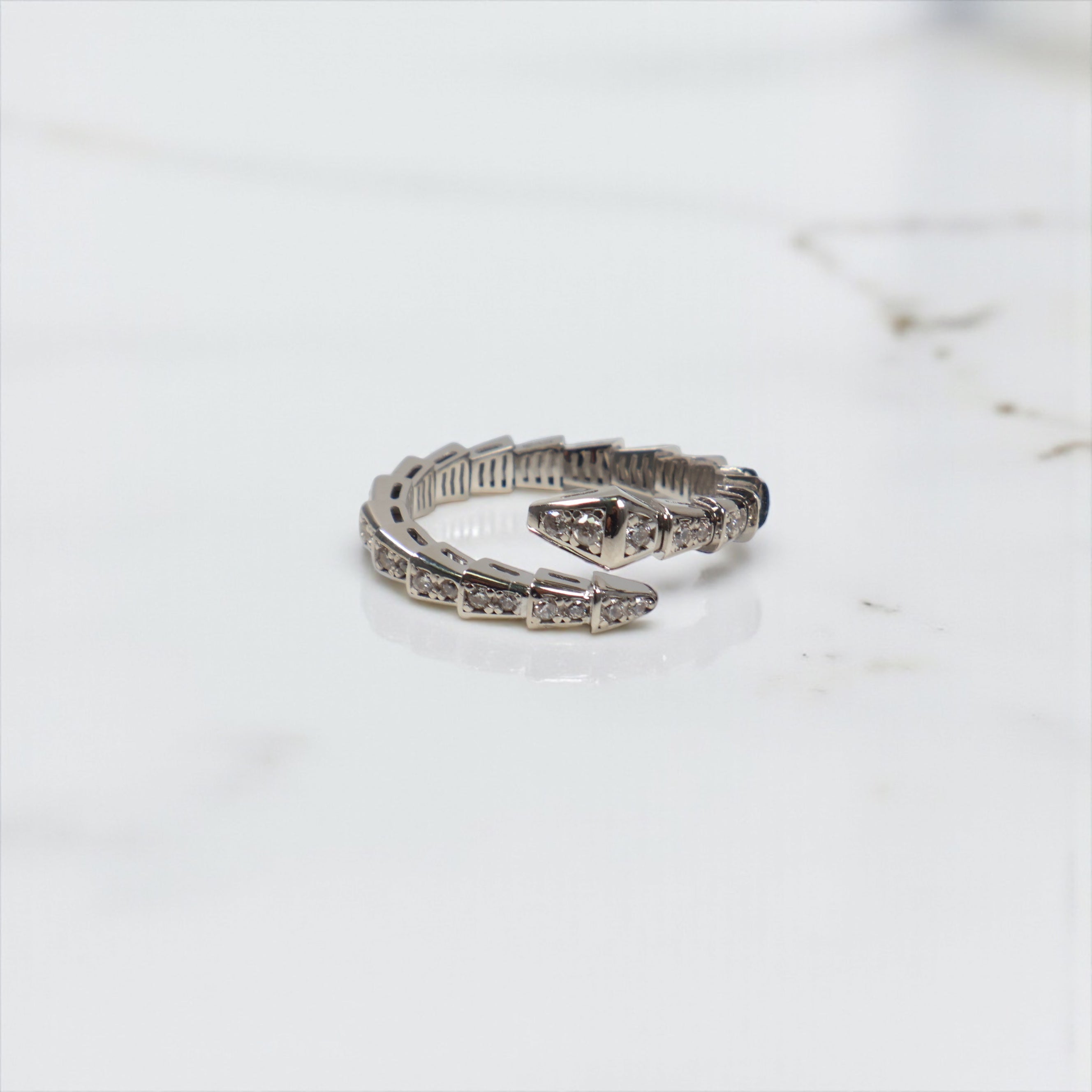 14K WG Snake Rings / 4.1gr / Sz 8 / White Zircons