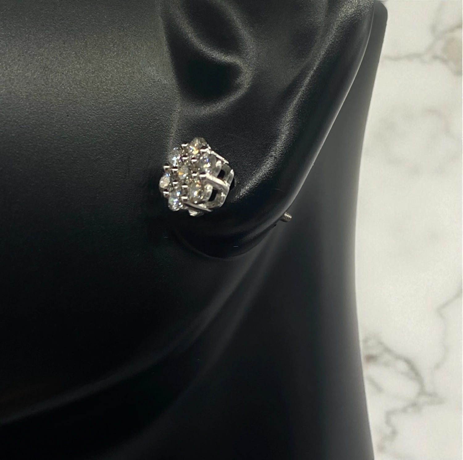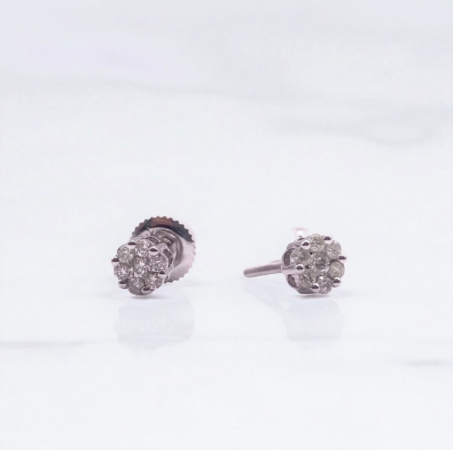 14K White Gold Diamond Flower Stud Earrings 0.49Ct / 1.3gr
