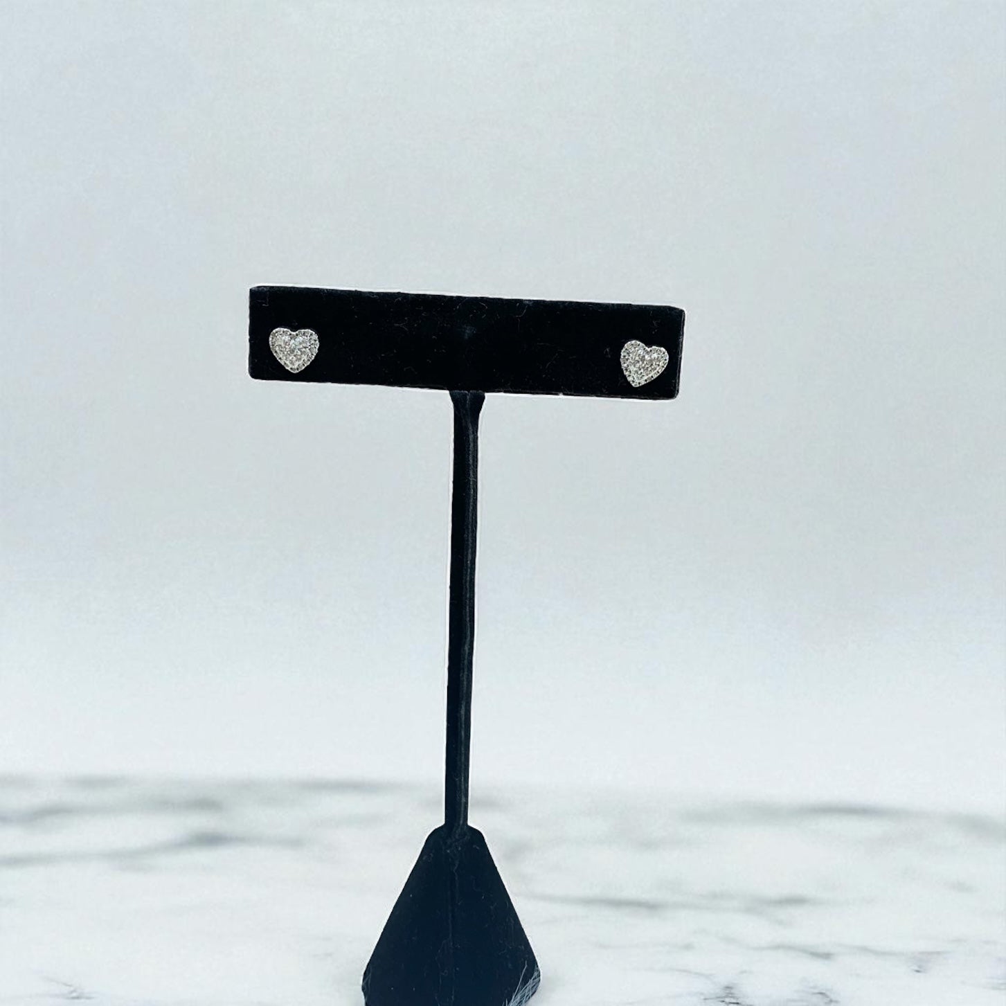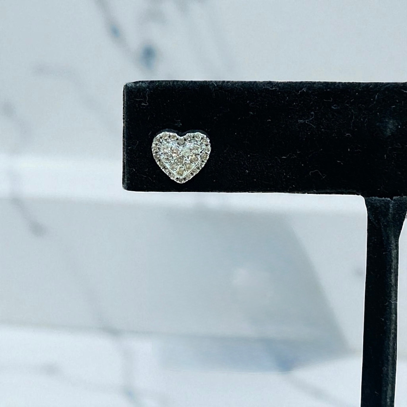 14K White Gold Diamond Heart Stud Earrings 0.28Ct / 1.7gr
