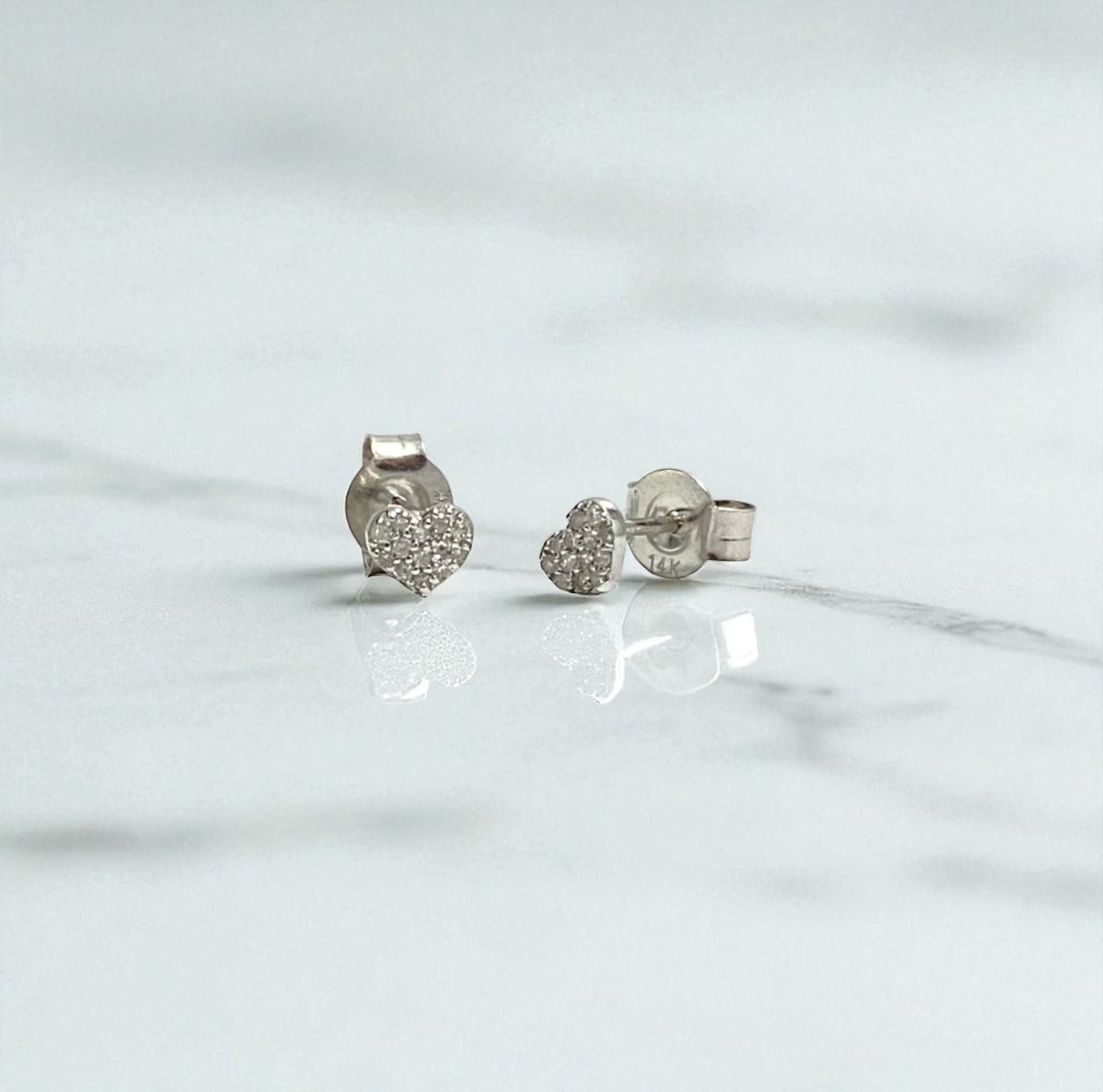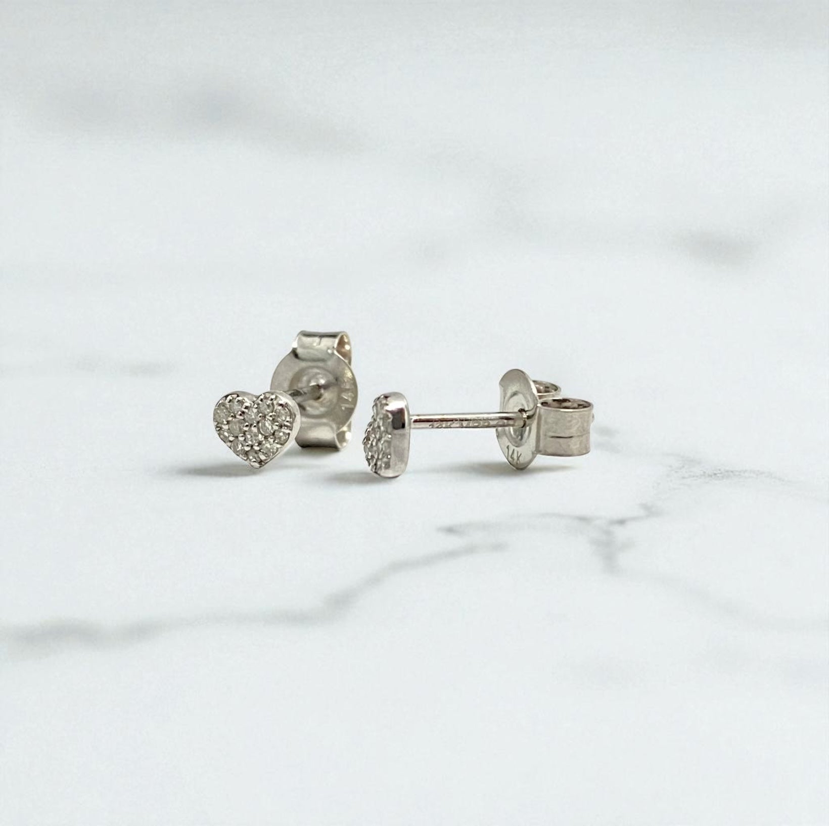 14K White Gold Diamonds Heart Stud Earrings 0.06 Ct Dia / 0.68gr / 4mm
