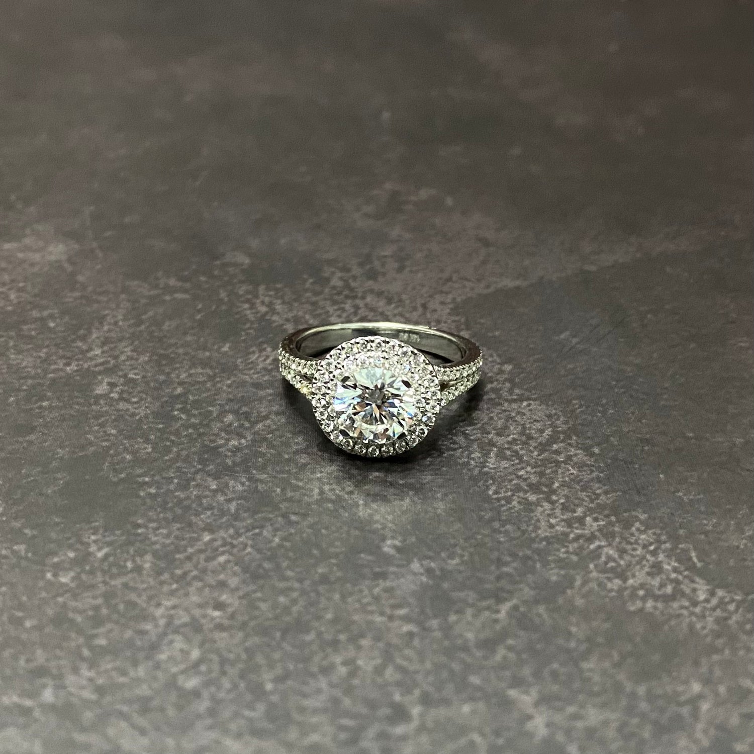 14K White Gold Lab Diamond Round Brilliant Engagement Ring 2.06Ct Lab Dia Vs / 5.2gr / Size 6 3/4