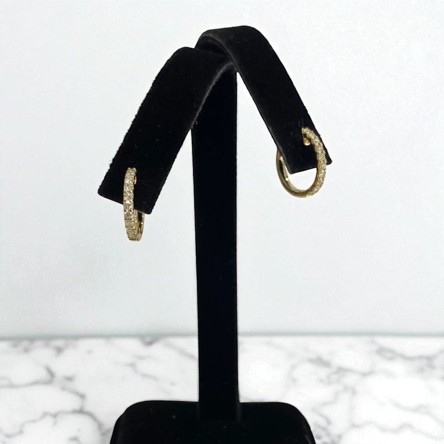 14K Yellow Gold Diamond Luxury Hoop Earrings 0.55Ct / 2.6gr
