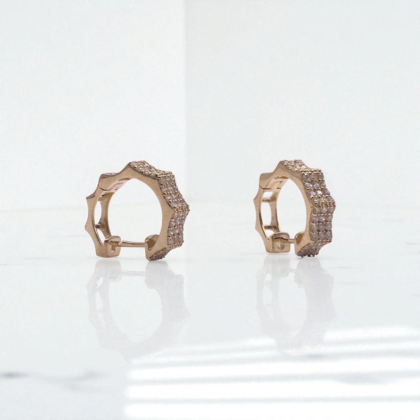14K Yellow Gold Diamond Luxury Hoop Earrings 0.95Ct / 3gr