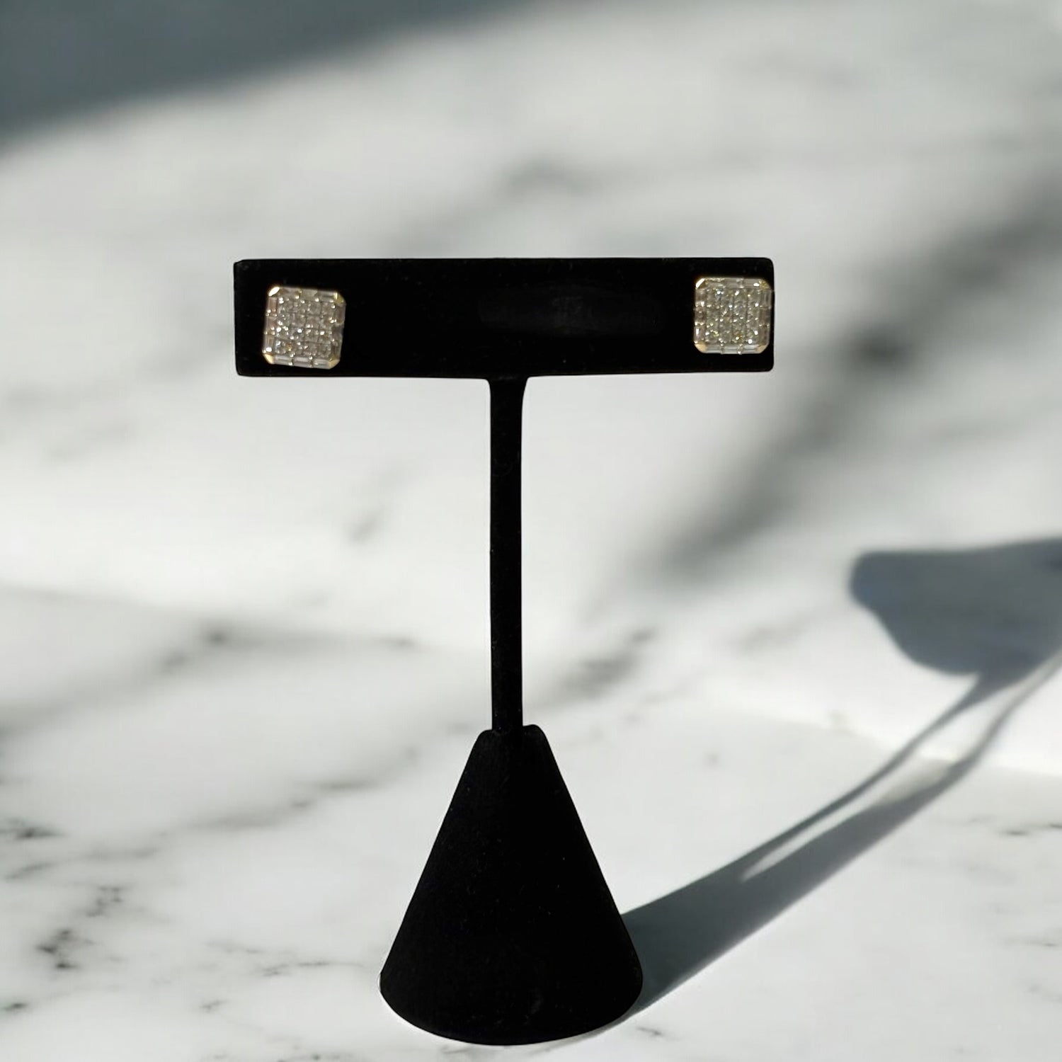 14K Yellow Gold Diamond Square Stud Earrings 0.95Ct / 3.1gr