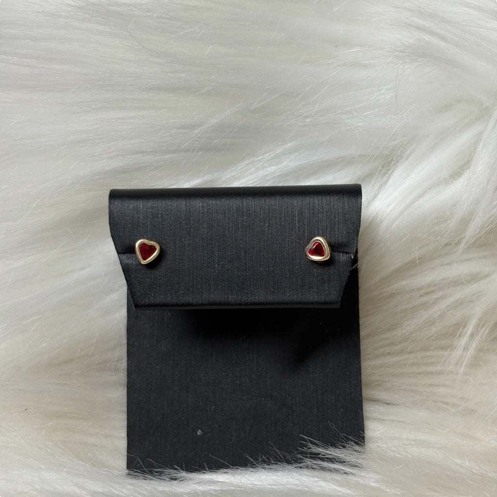 14K Yellow Gold Heart Redstone Stud Earrings / 0.5gr