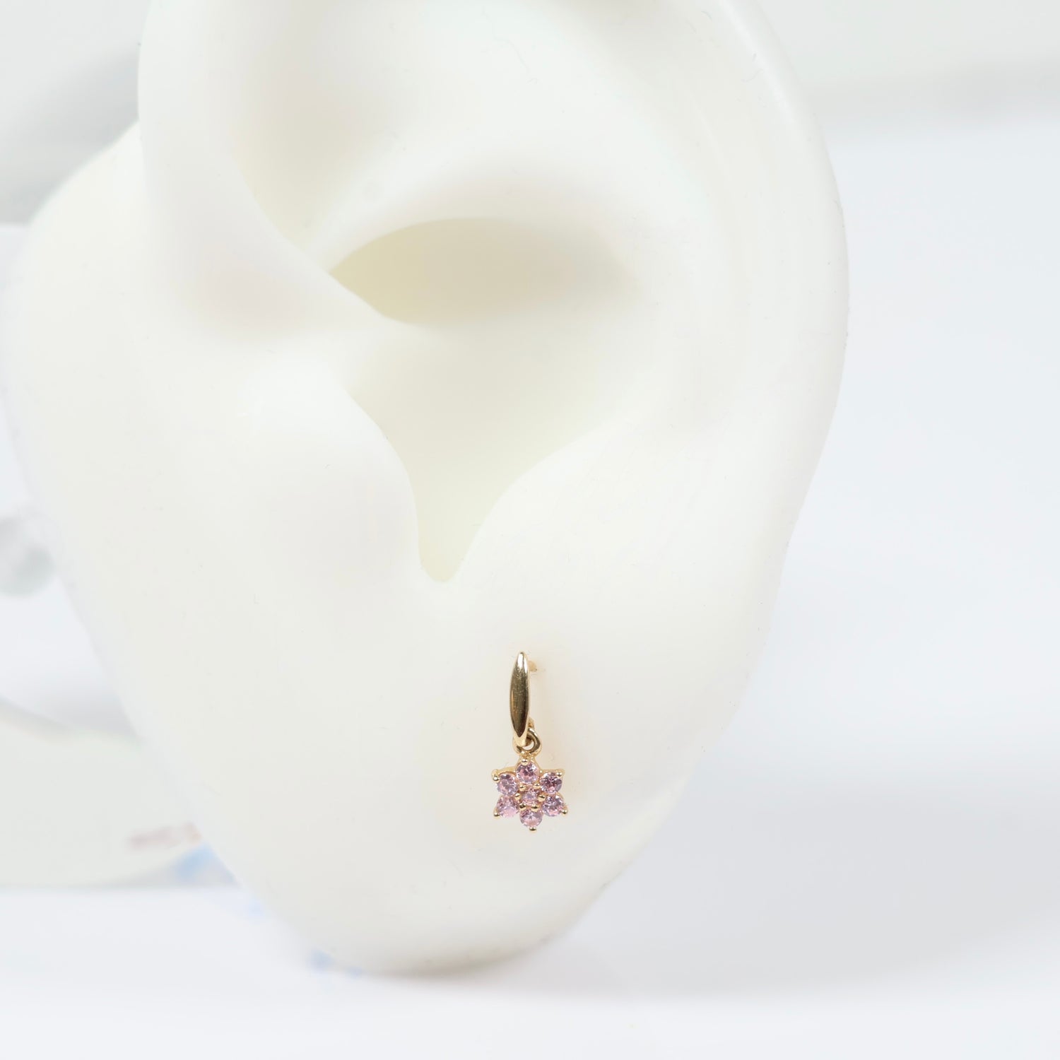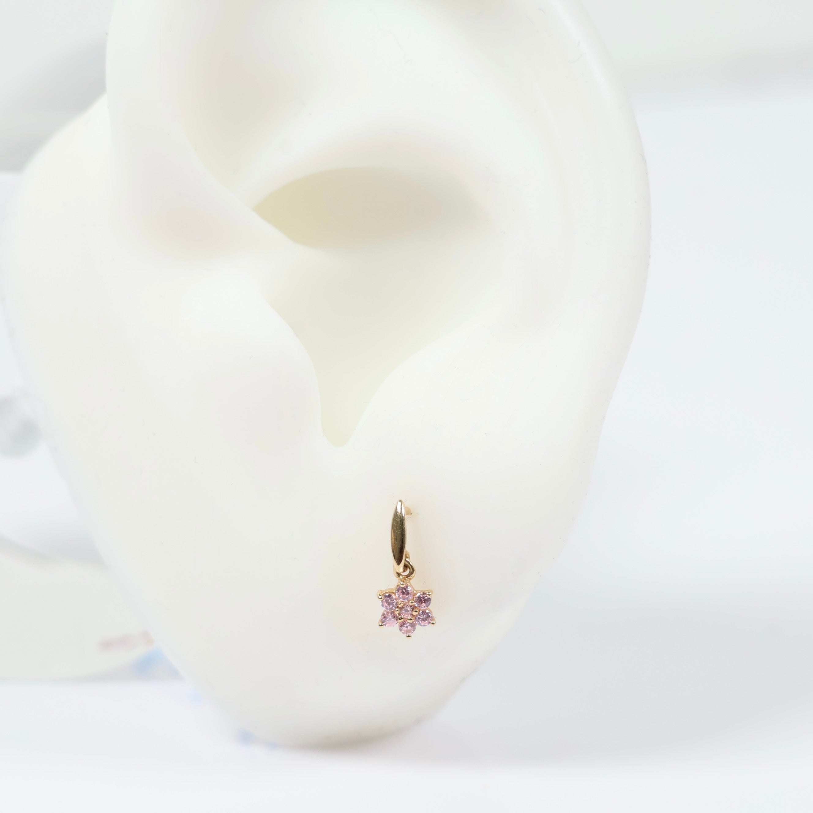 14K Yellow Gold Pink Flower Stud Earrings With Zircons / 0.48gr
