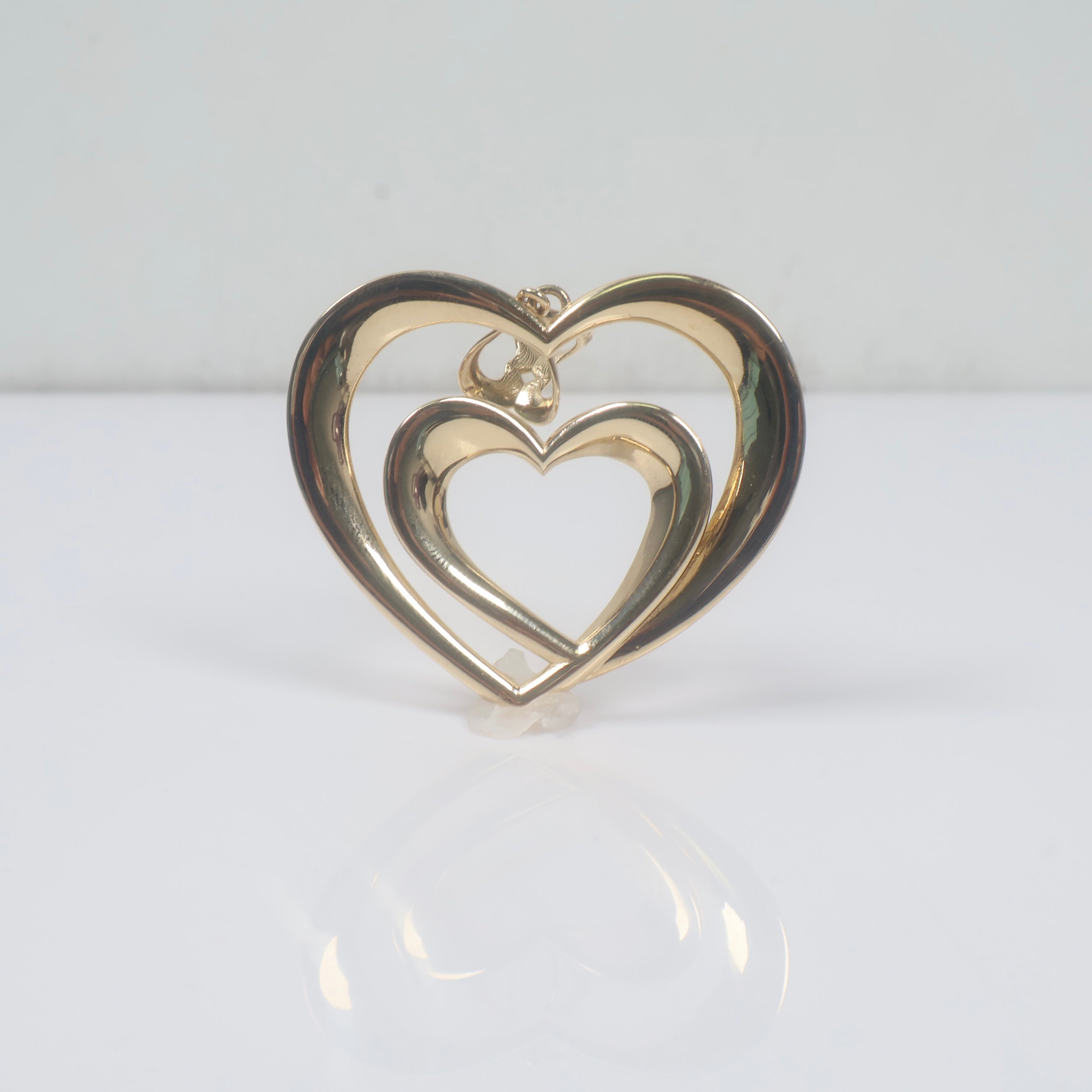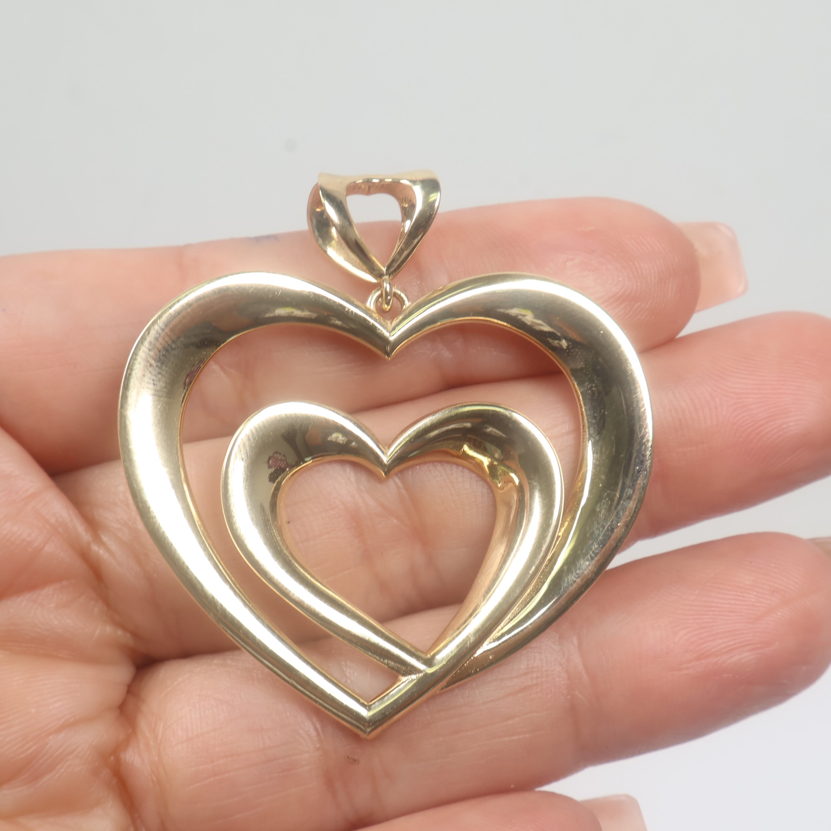 14K YG Double Heart Pendant / 7.3gr / 1.7in /