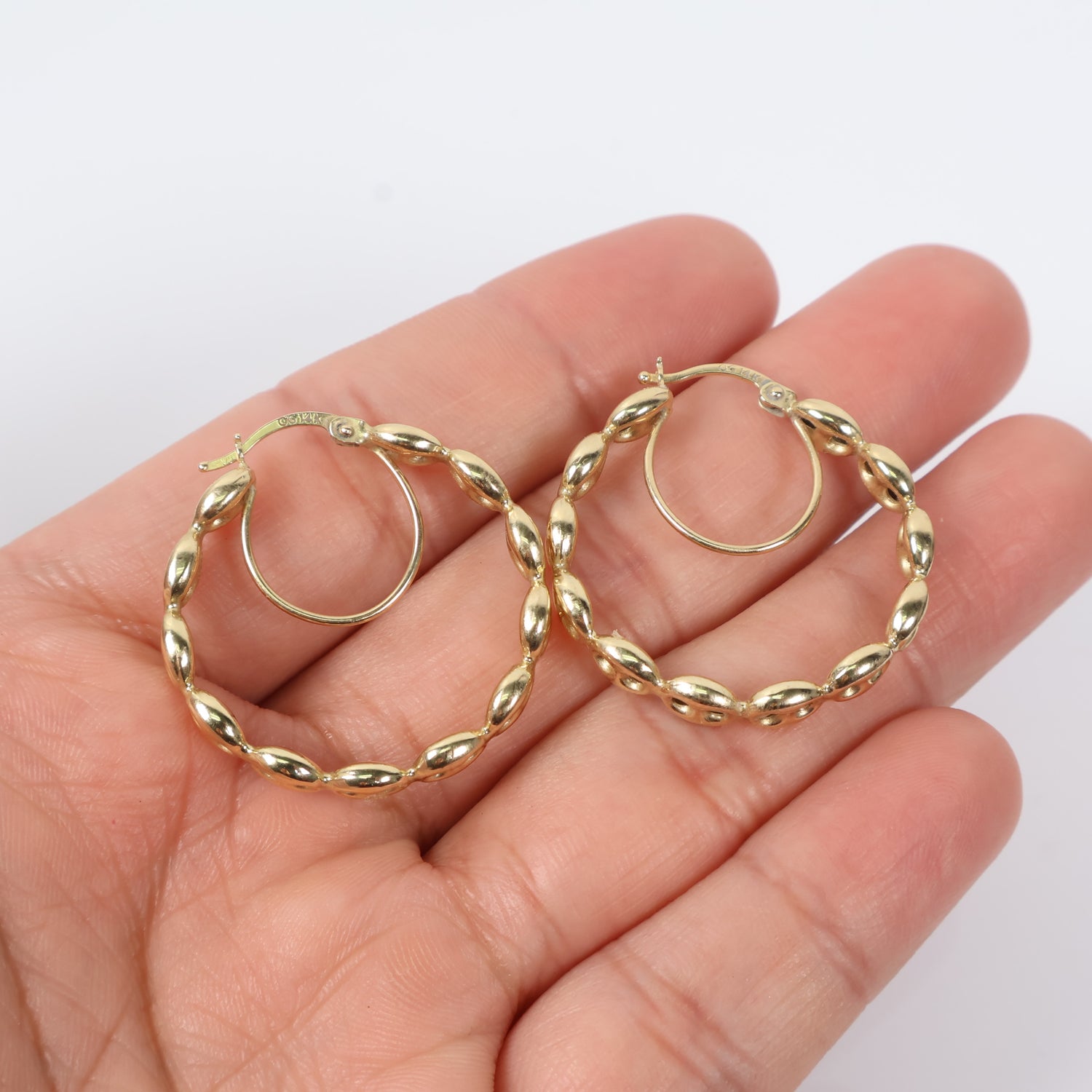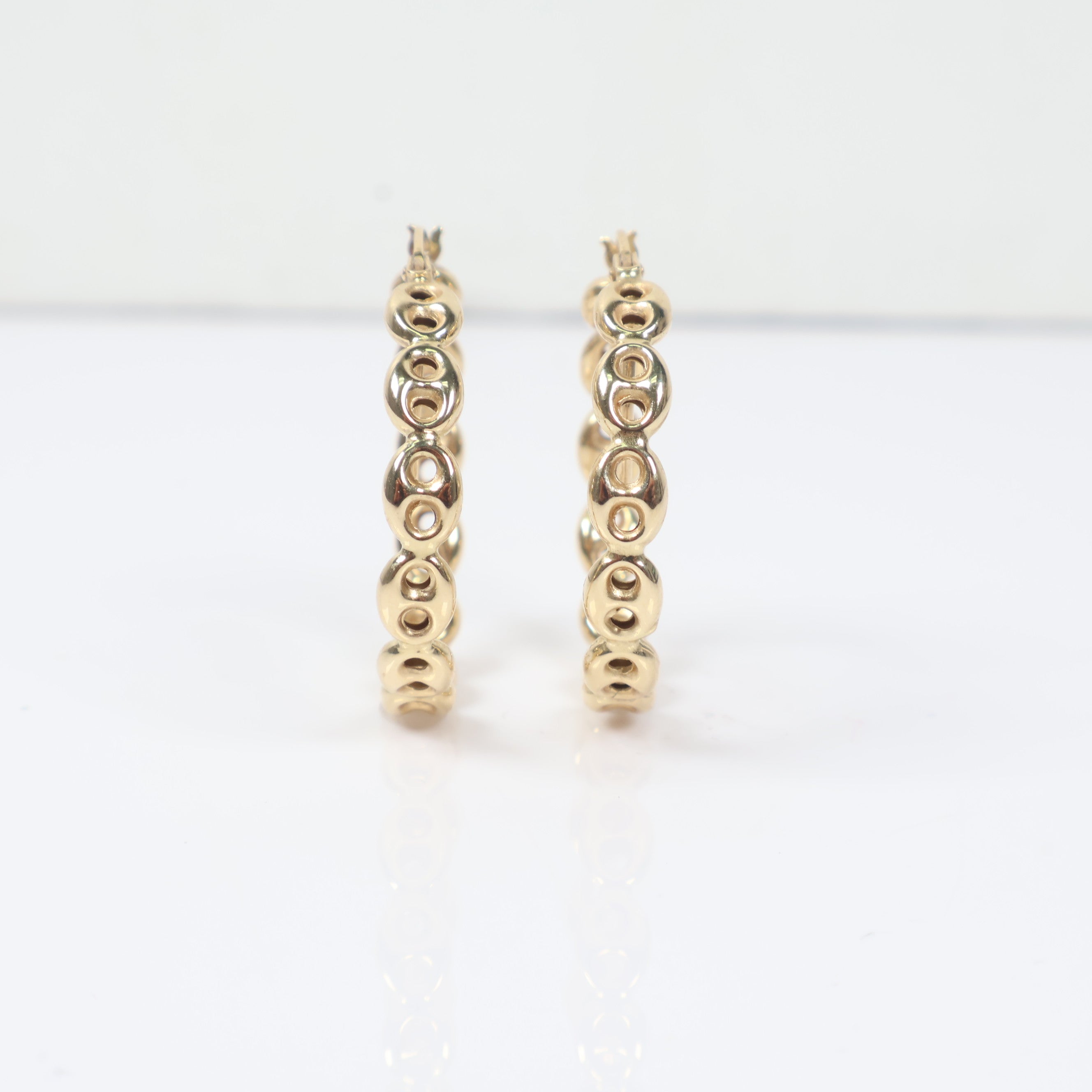 14K YG Gc Link Hoop Earrings / 4.34gr / 1.2in /
