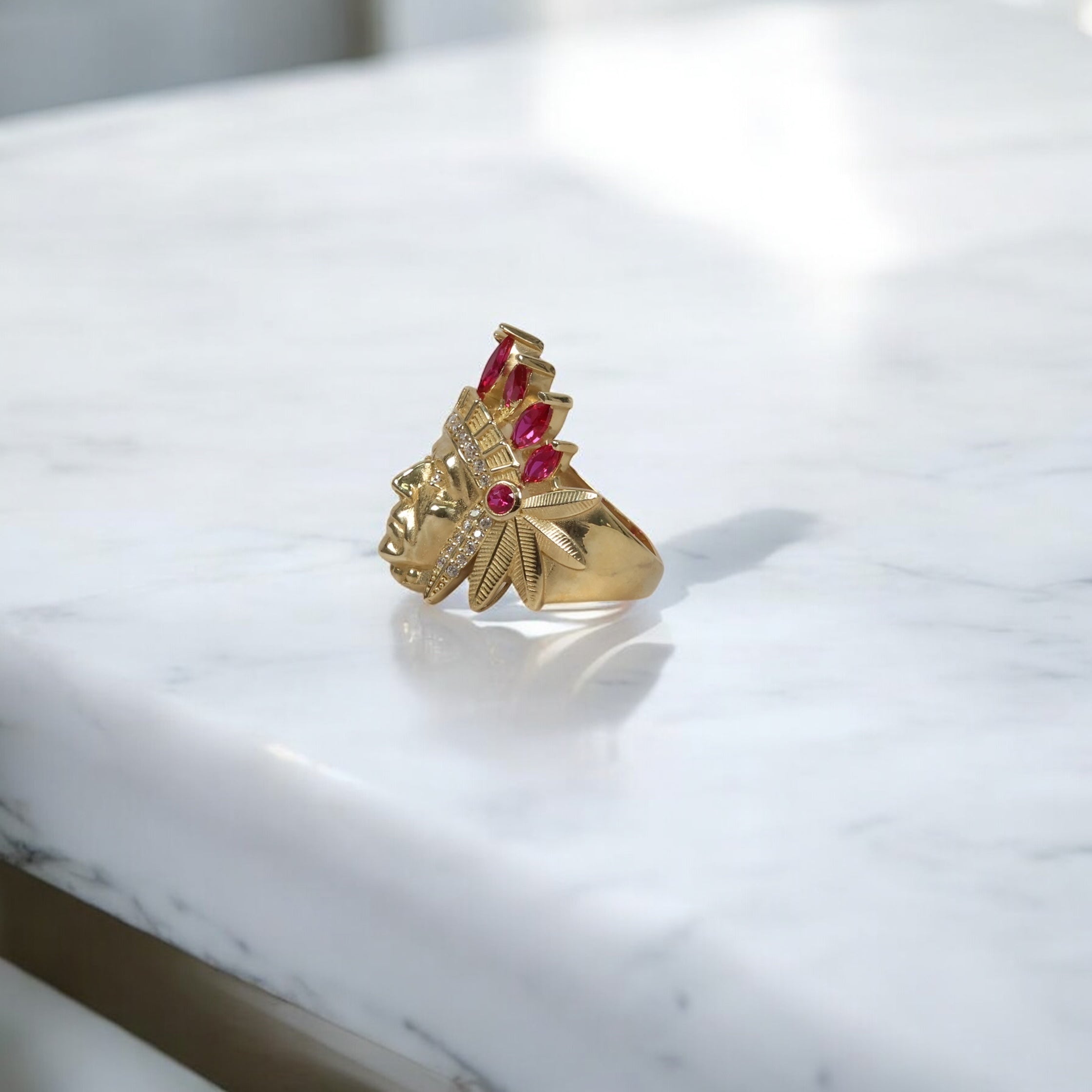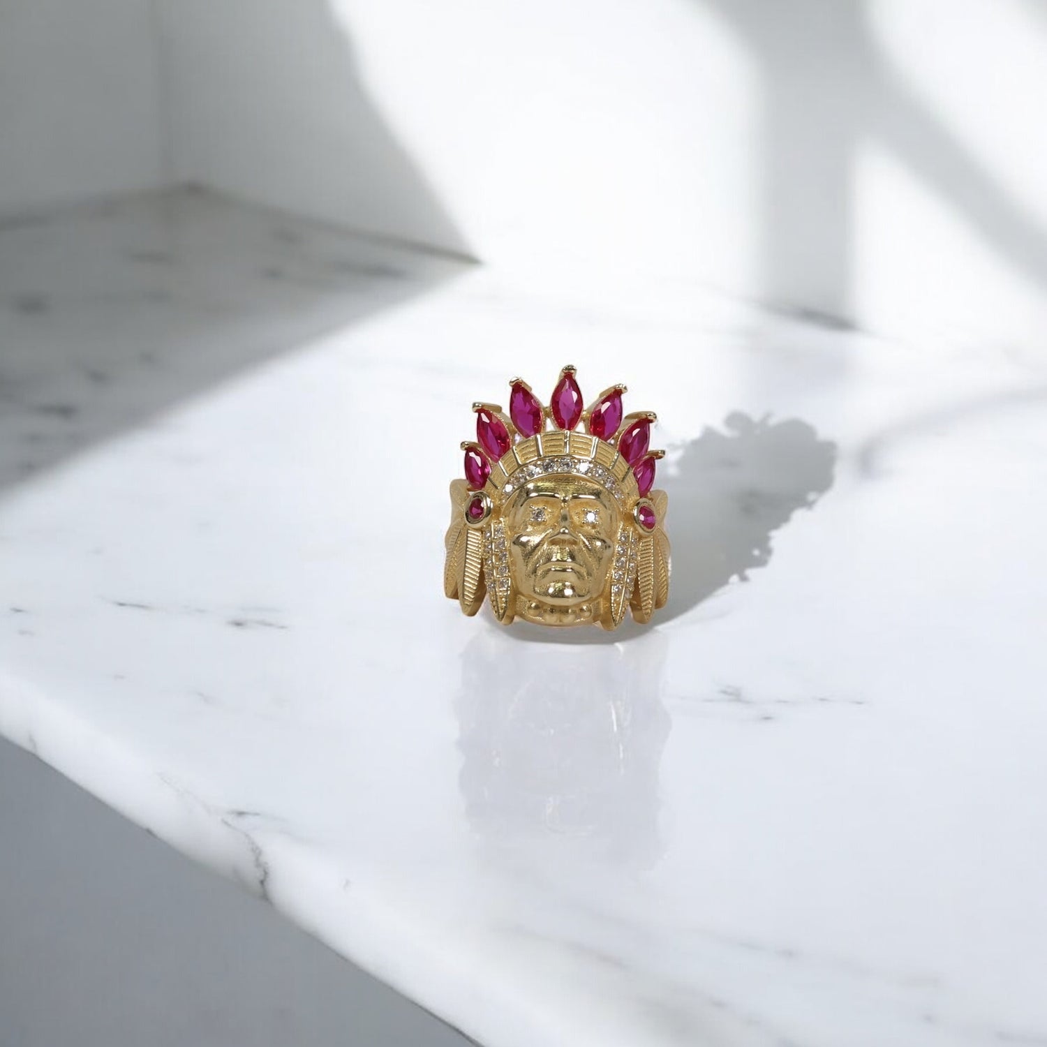 14K YG Indio Rings / 5.65gr / Sz 8 / White/Fucshia Zircons