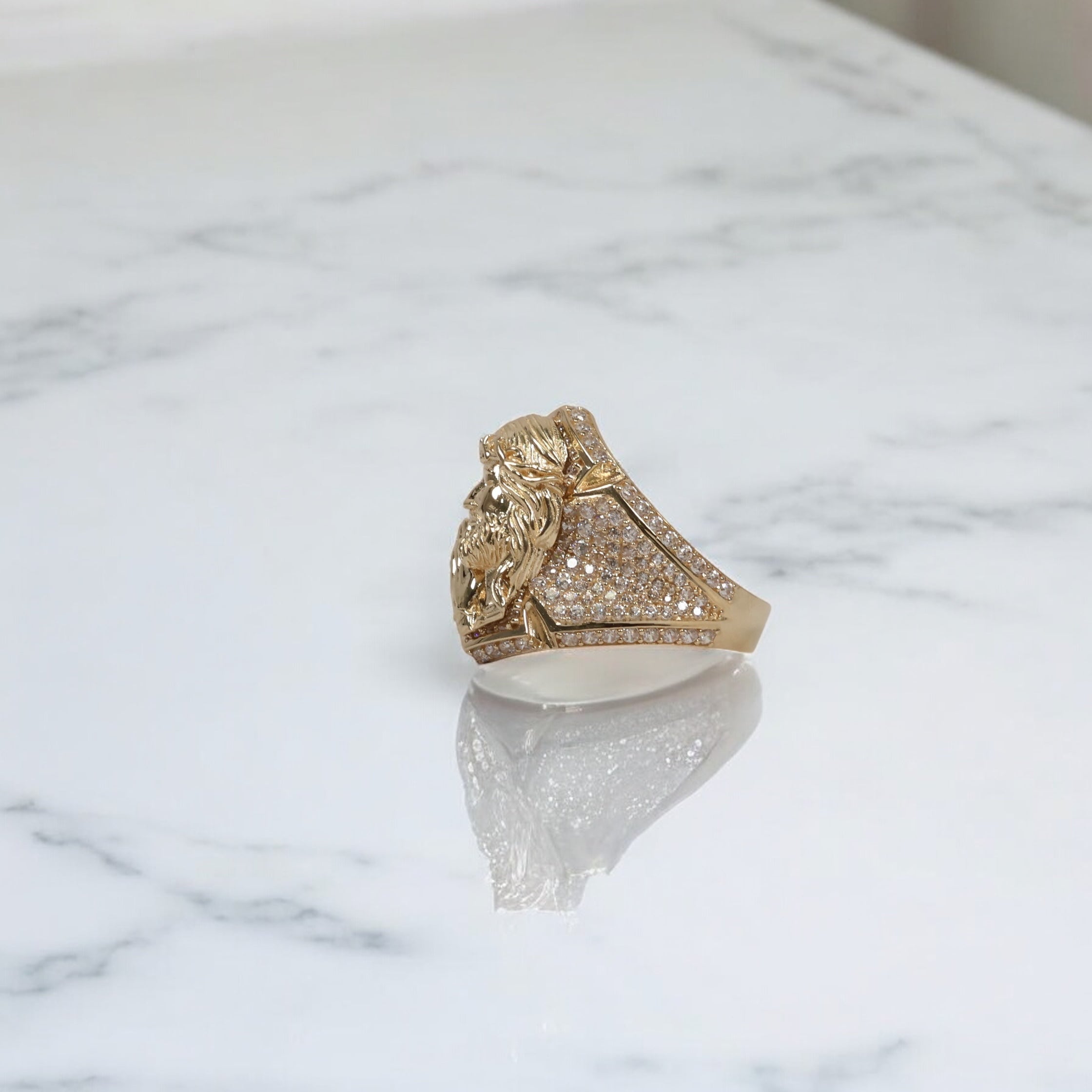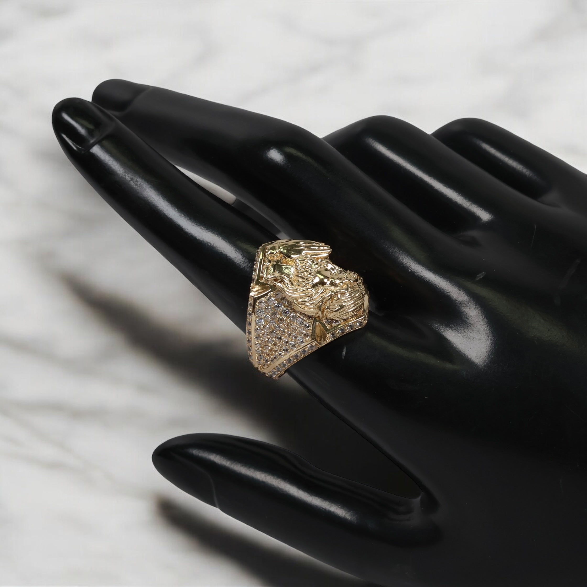 14K YG Jesus Praying Rings / 7.1gr / Sz 10 / White Zircons