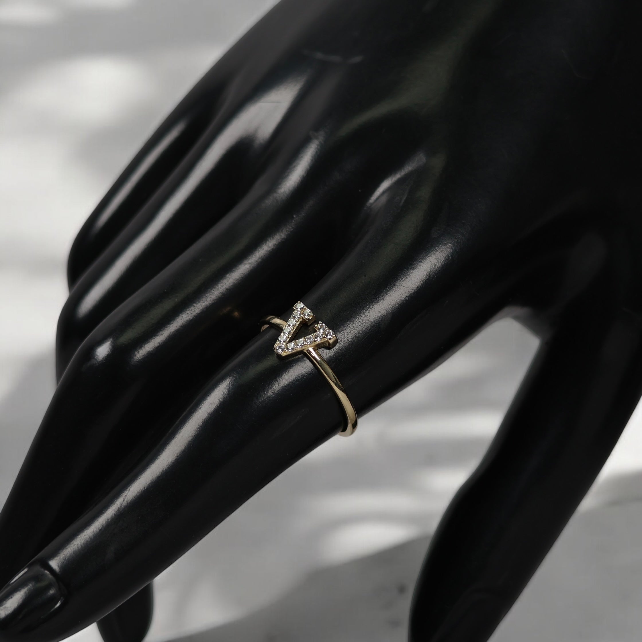 14K YG Letter V Rings / 1.35gr / Sz 7.5 / White Zircons