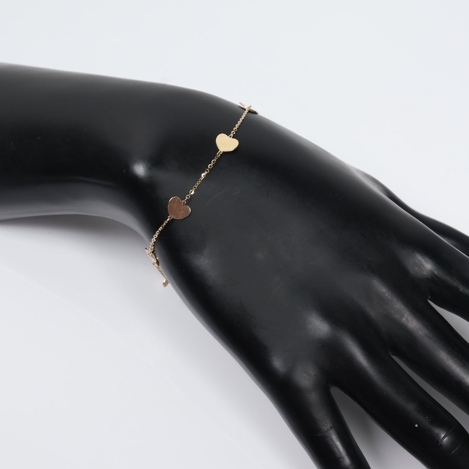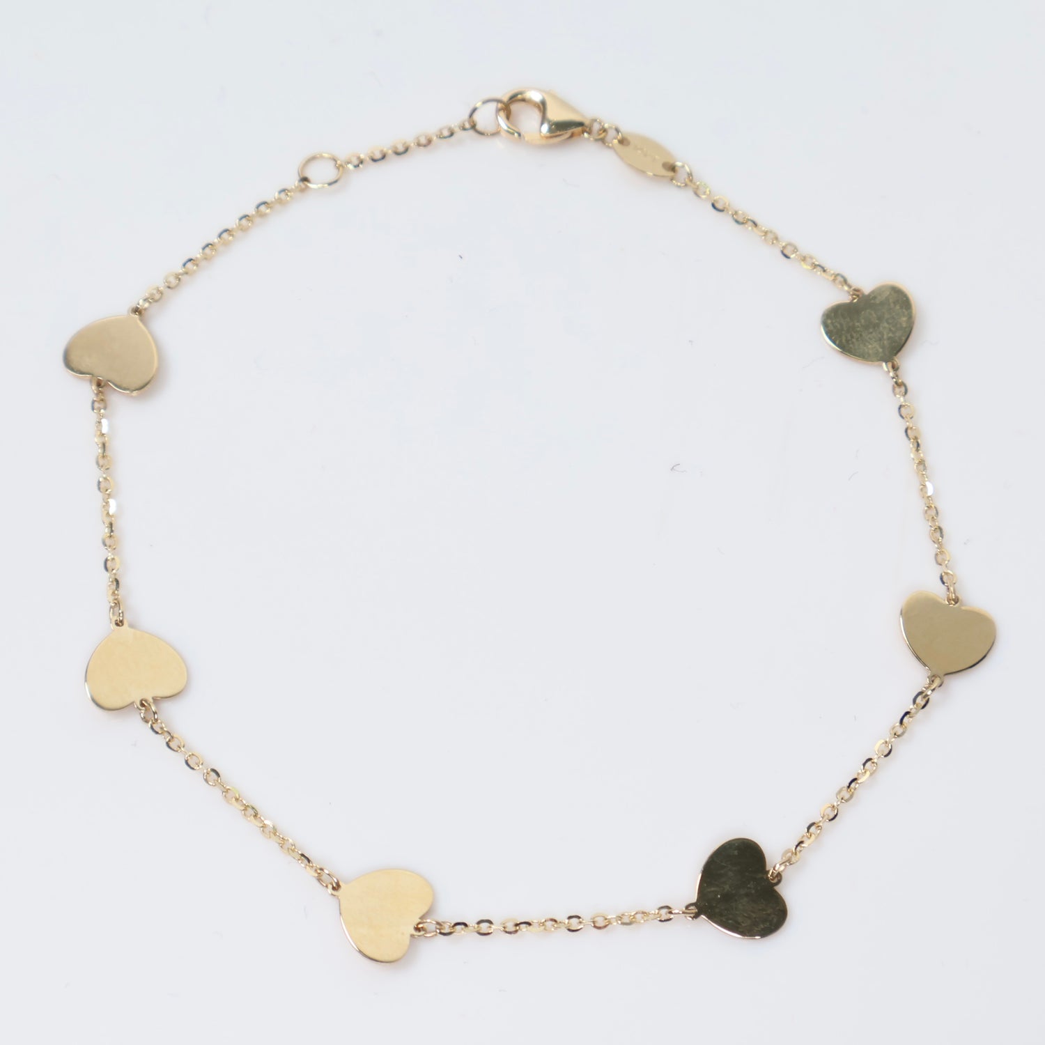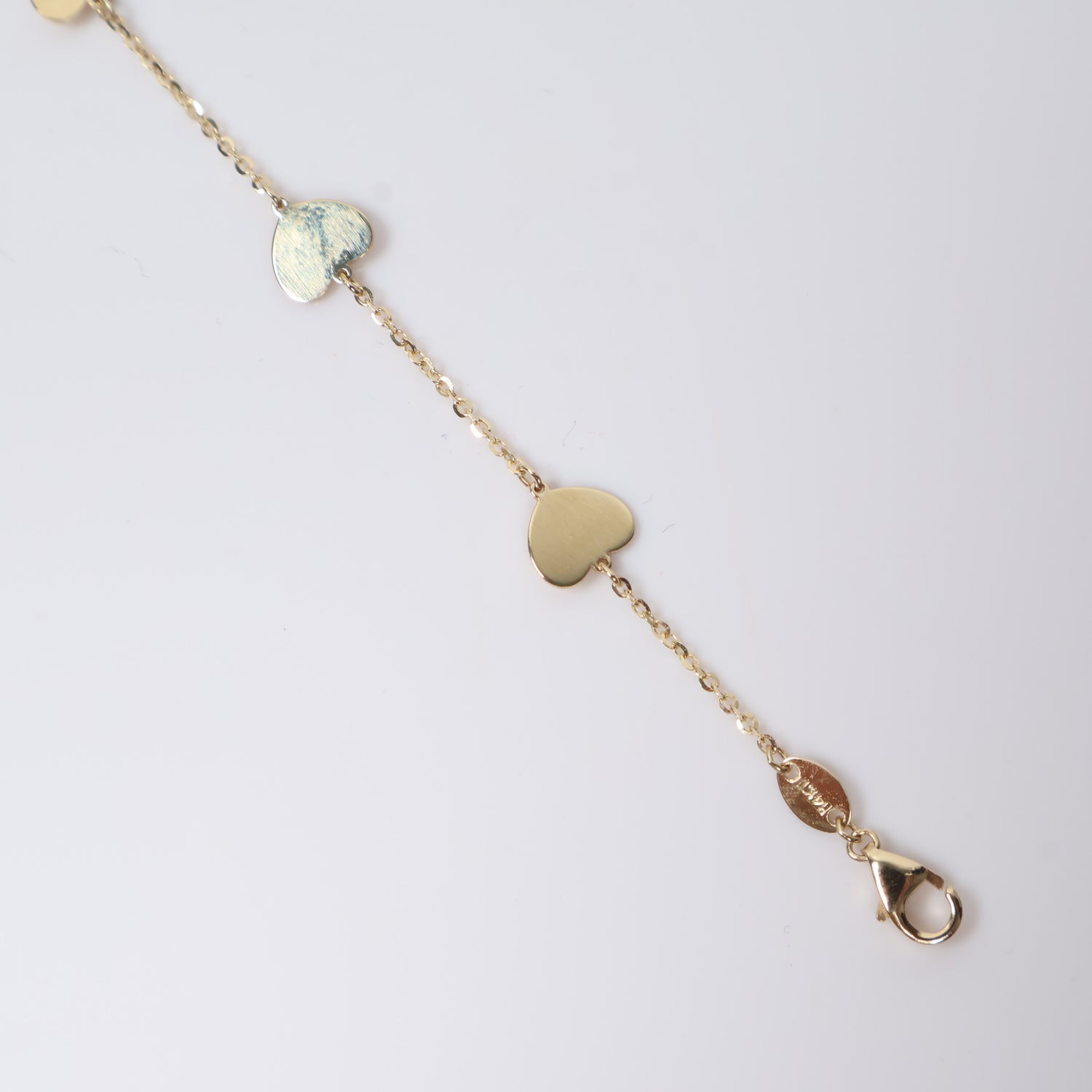 14K YG Little Flat Hearts Bracelet / 2.1gr / 1mm / 8in /