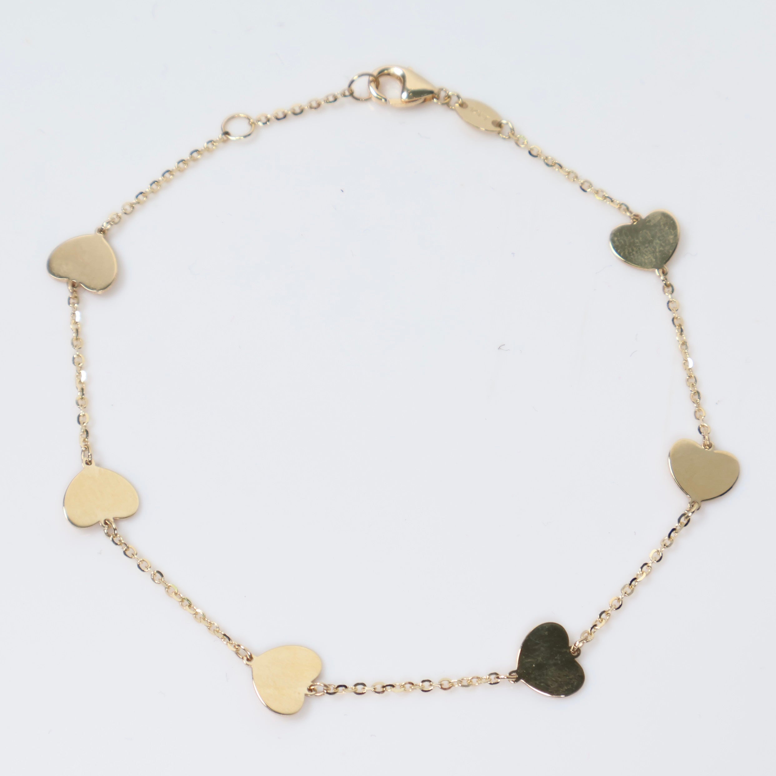 14K YG Little Flat Hearts Bracelet / 2.1gr / 1mm / 8in /