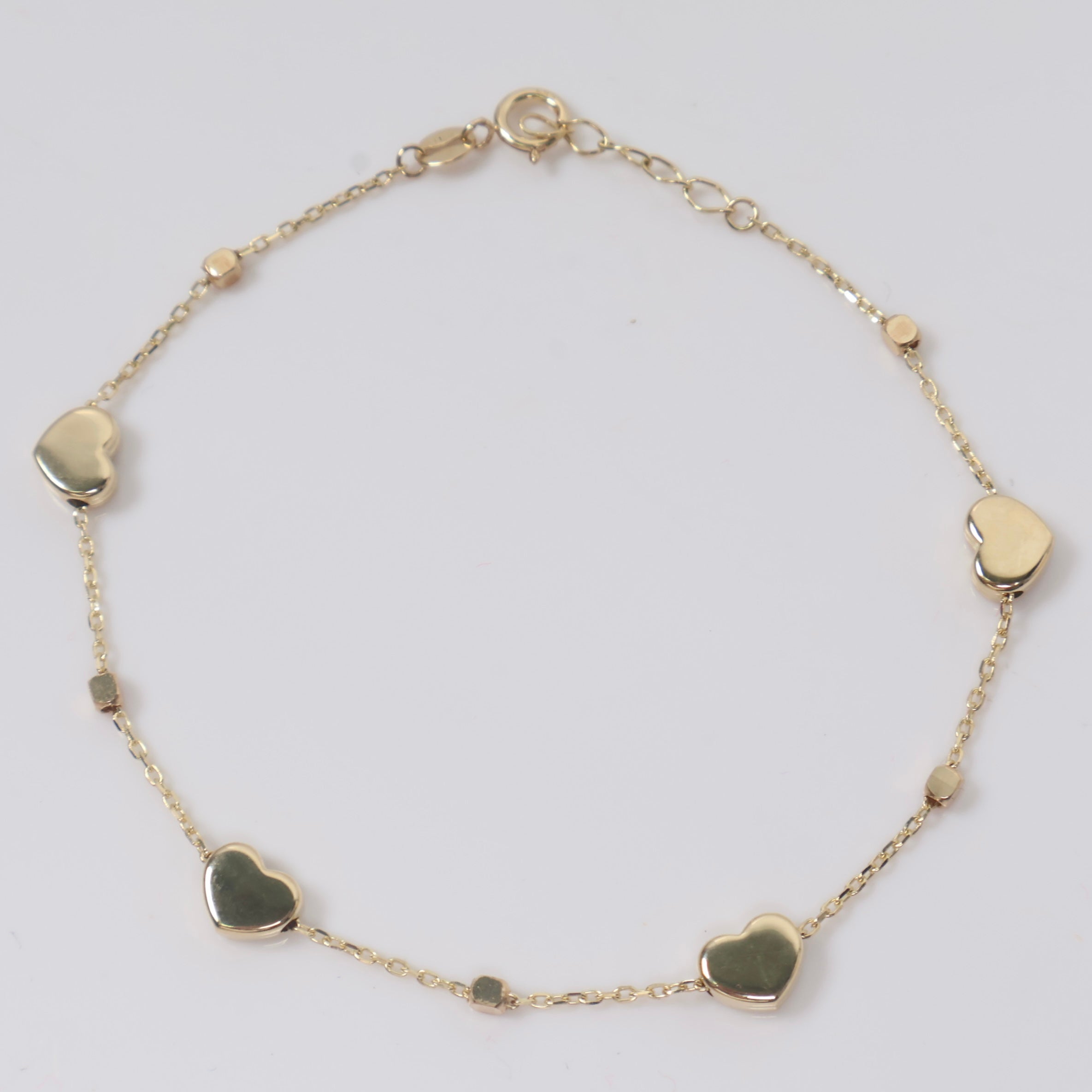 14K YG Little Hearts Bracelet / 1.4gr / 1mm / 7in /