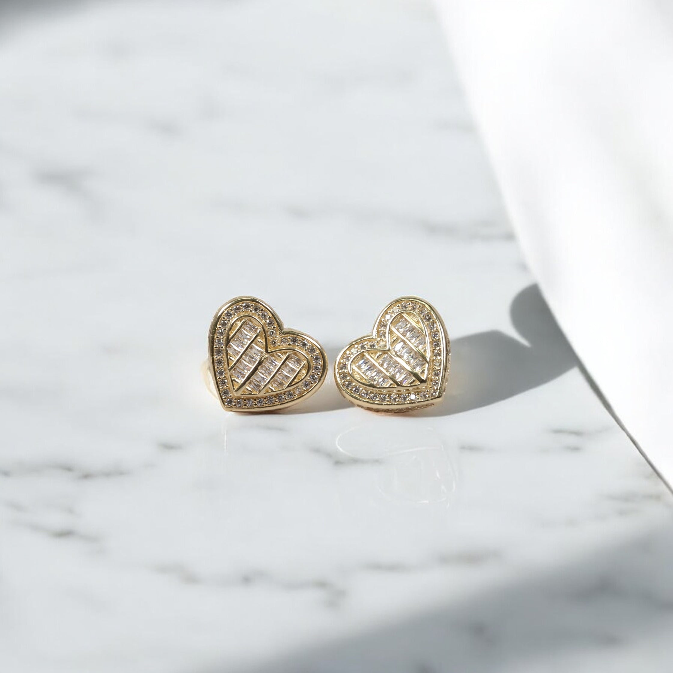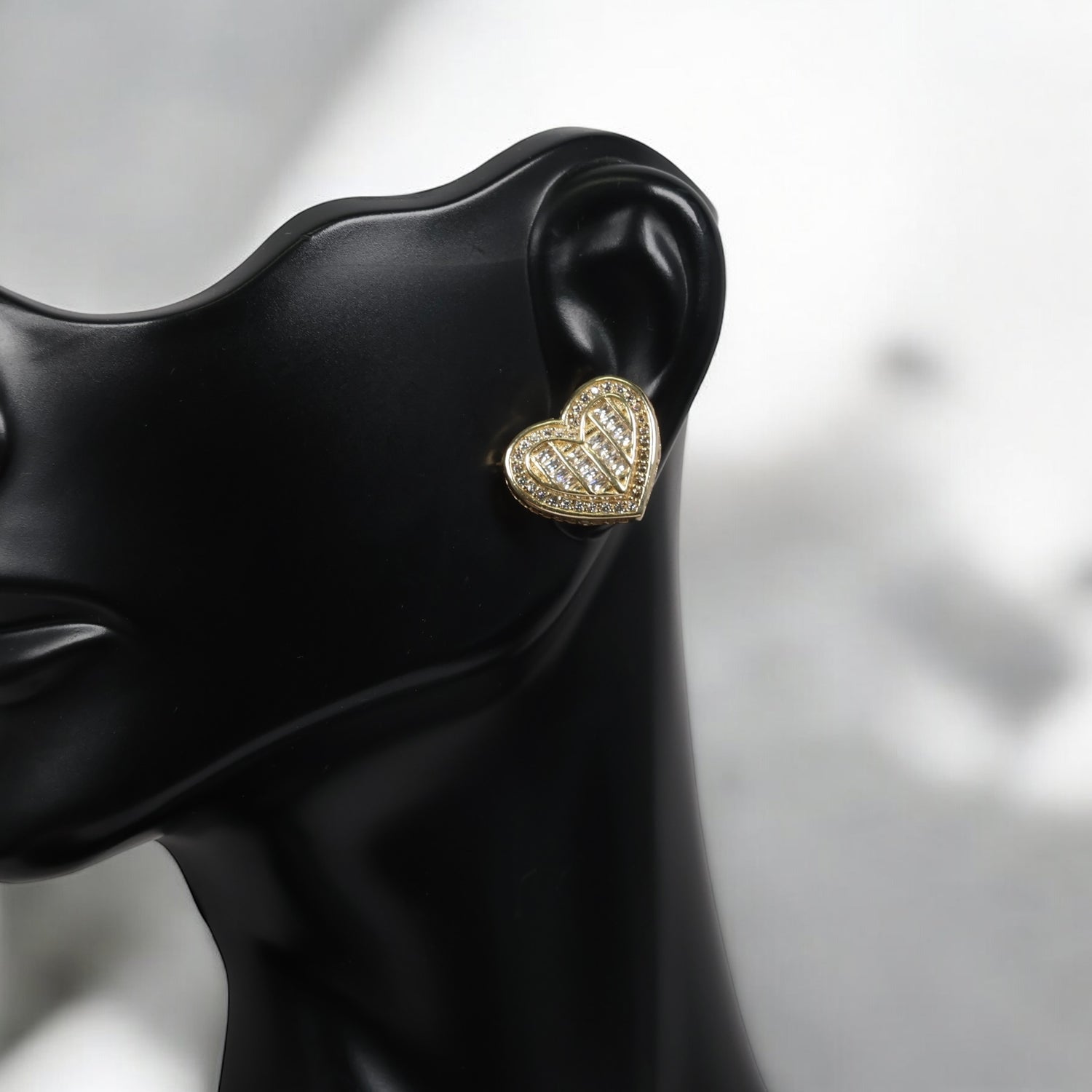 14K YG Luxury Heart Stud Earrings / 4.95gr / 16mm /