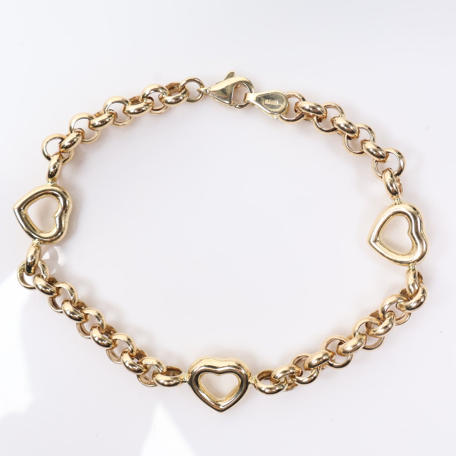 14K YG Roll-On With Hearts Bracelet / 5.5gr / 5.6mm / 7.5in /