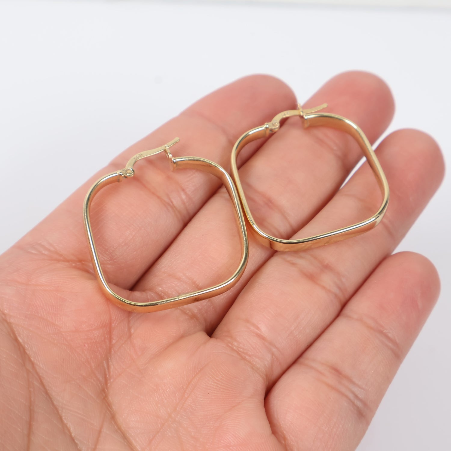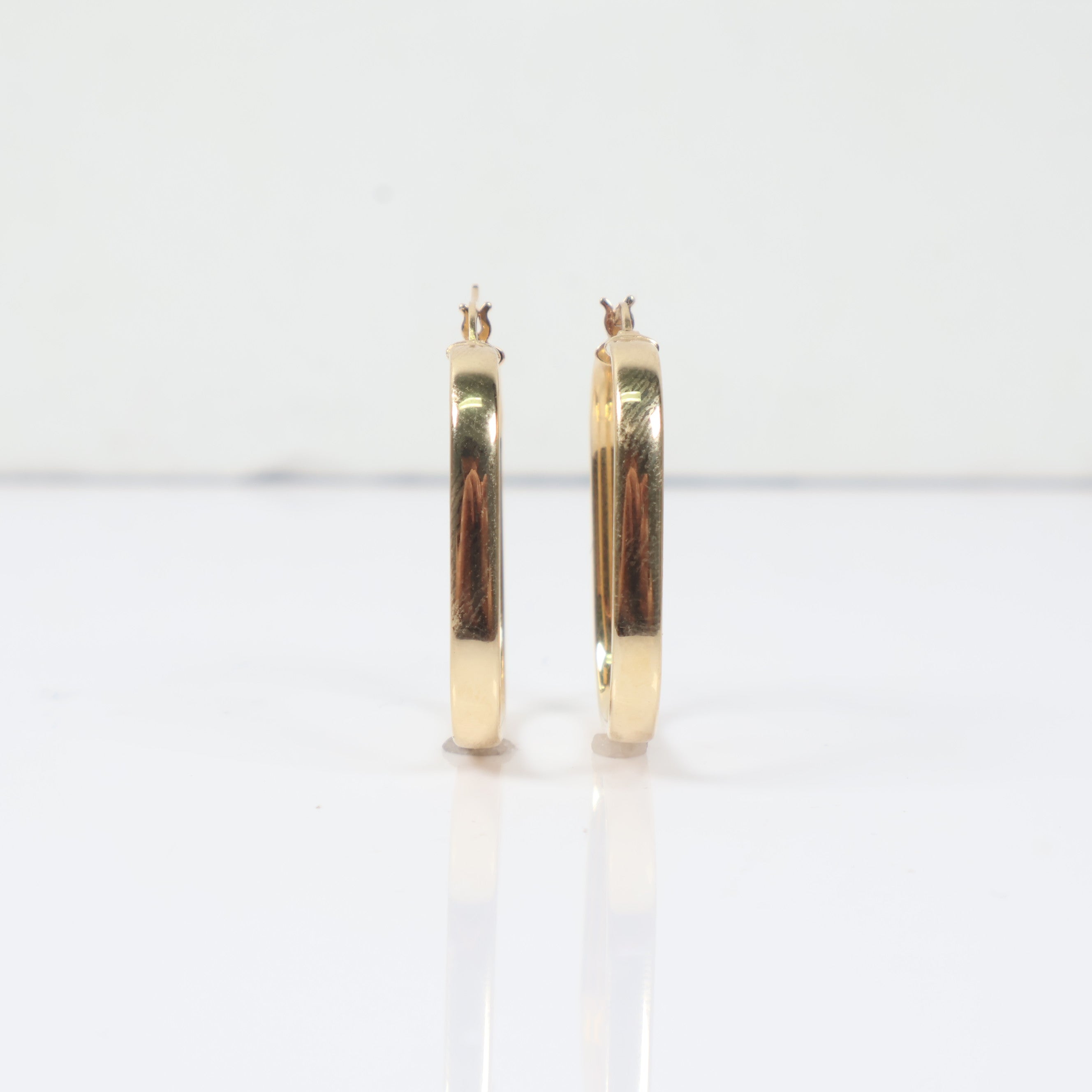 14K YG Square Hoop Earrings / 2.6gr / 1.3in /