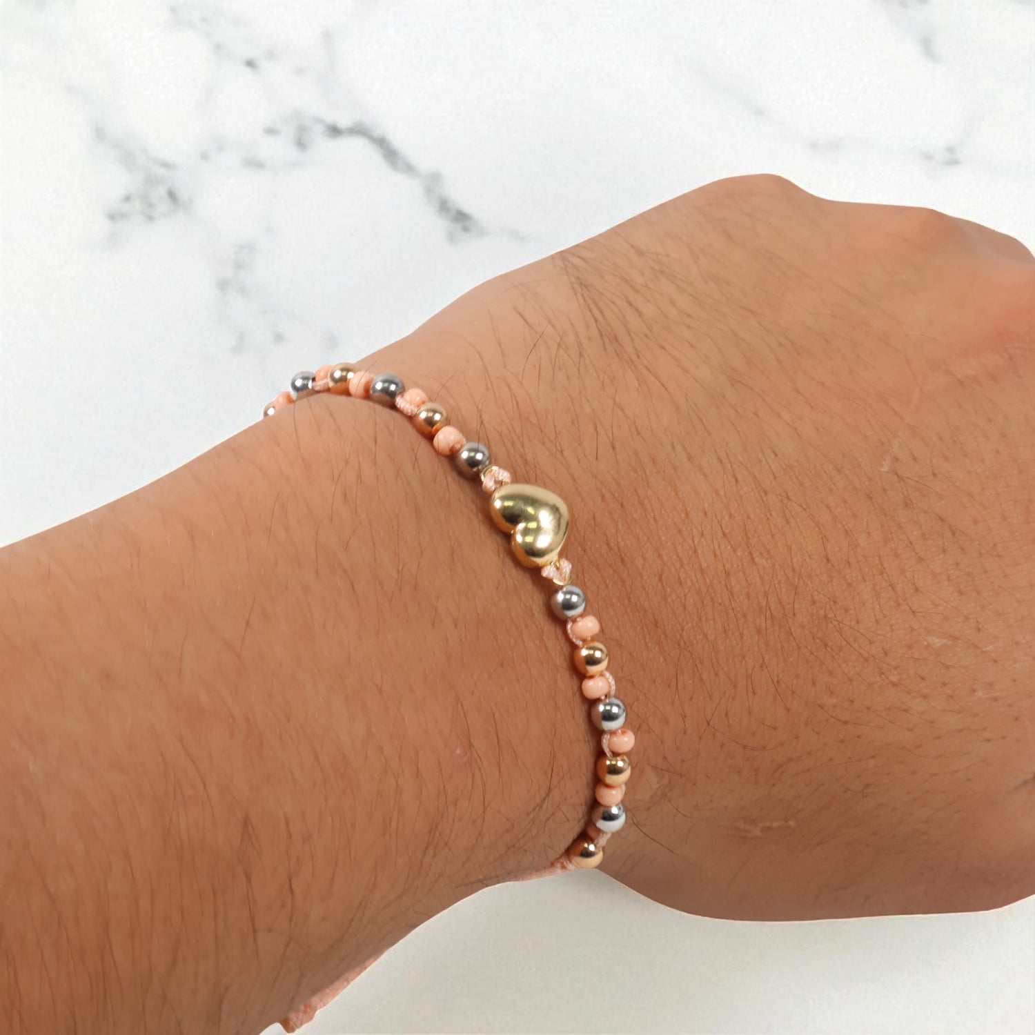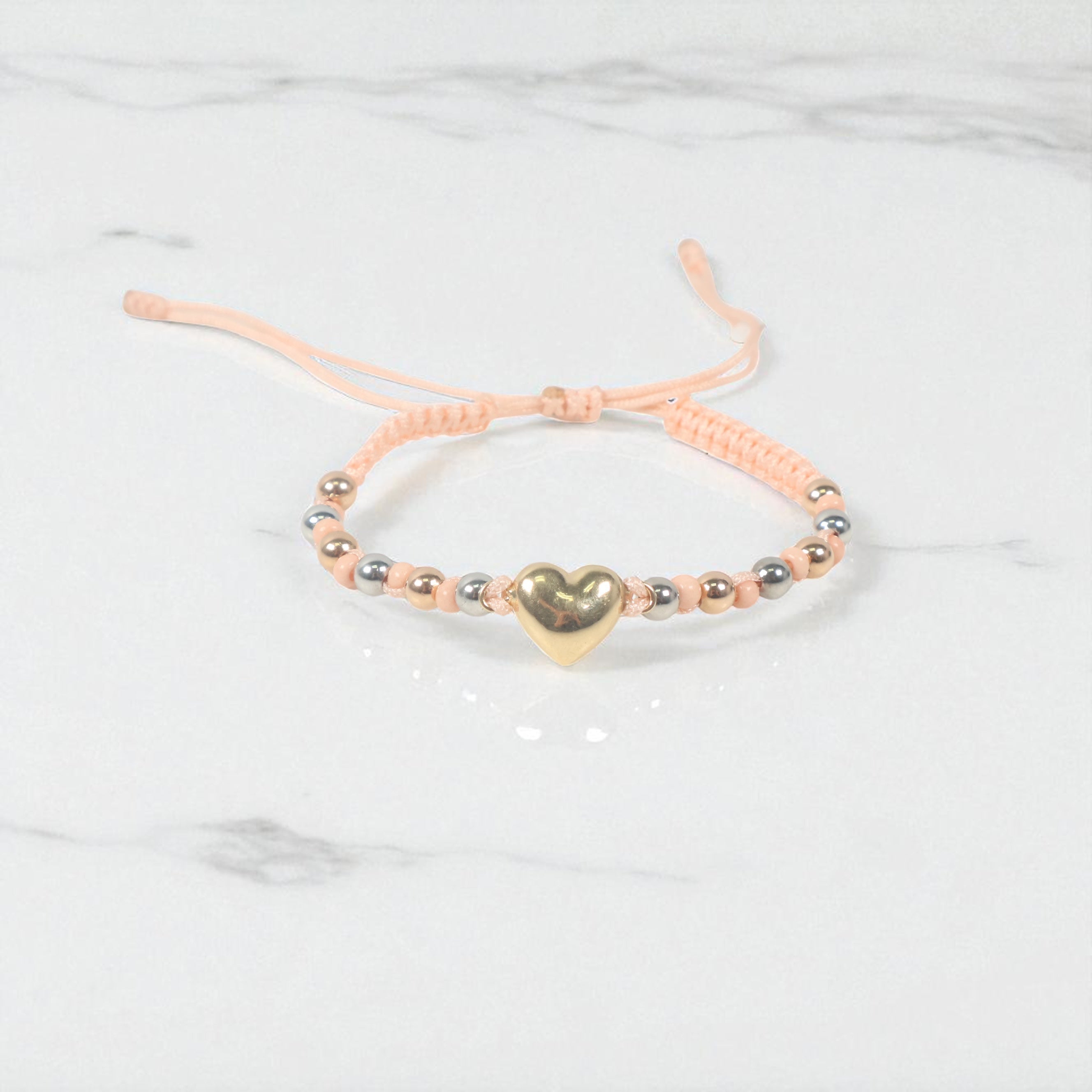 18K 2 Tone Heart-Smooth Balls Bracelet Tejido / 1.59gr / Adjustable /