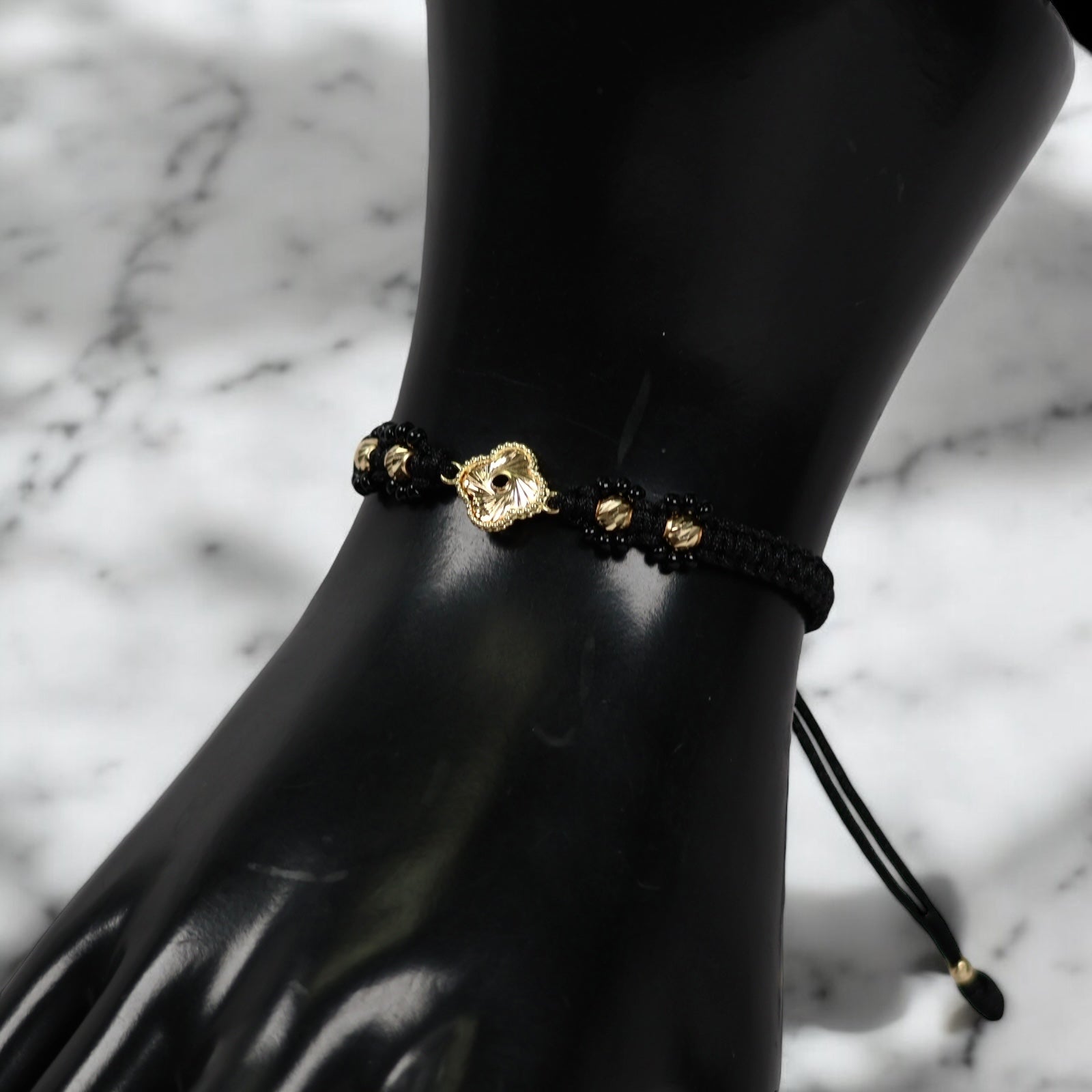 18K YG Diamond Cut Clover- Diamond Cut Balls Bracelet Tejido / 1.22gr / Adjustable /