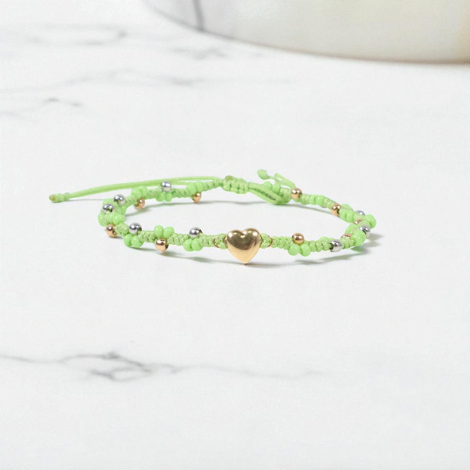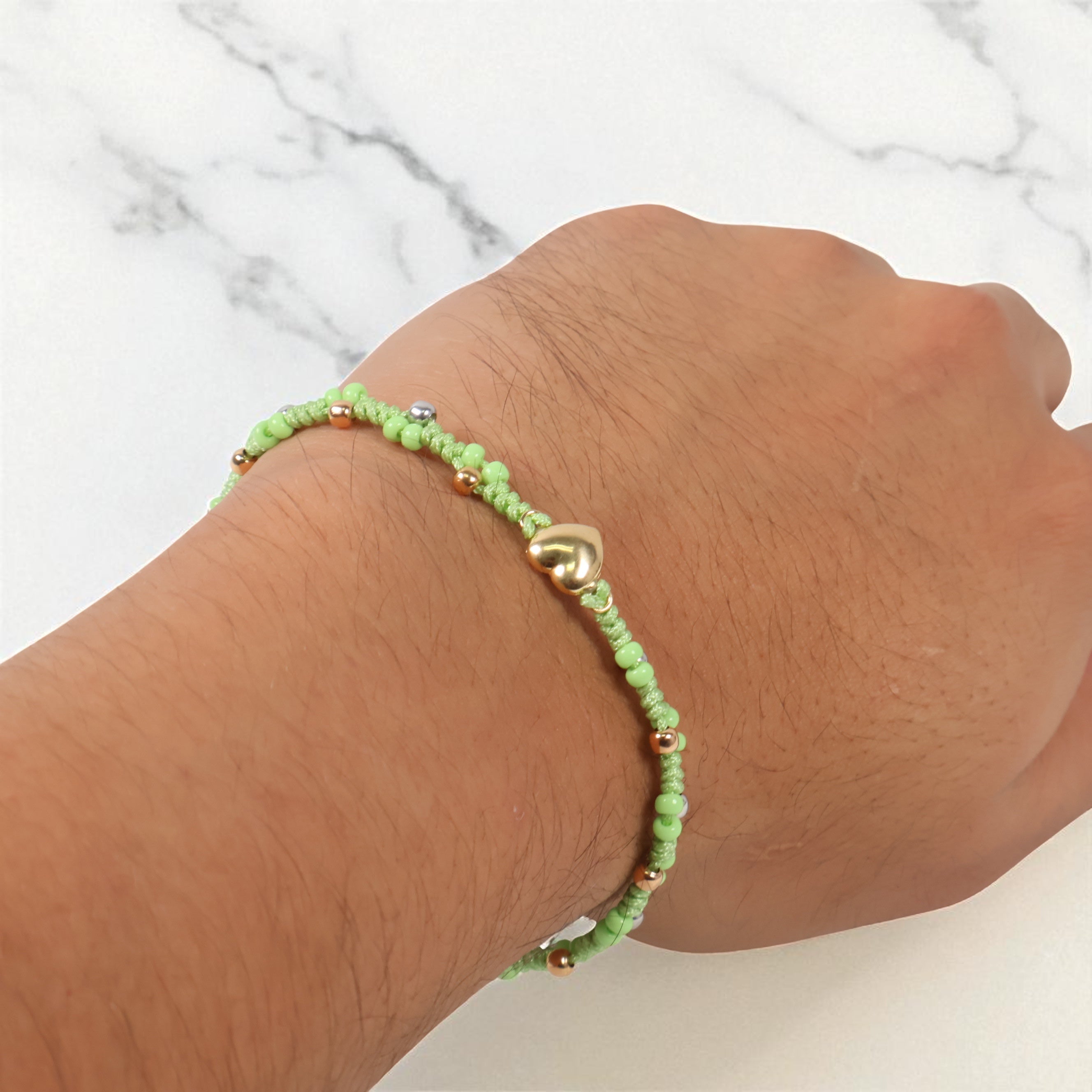 18K YG Heart-Smooth Balls Bracelet Tejido / 1.42gr / Adjustable /