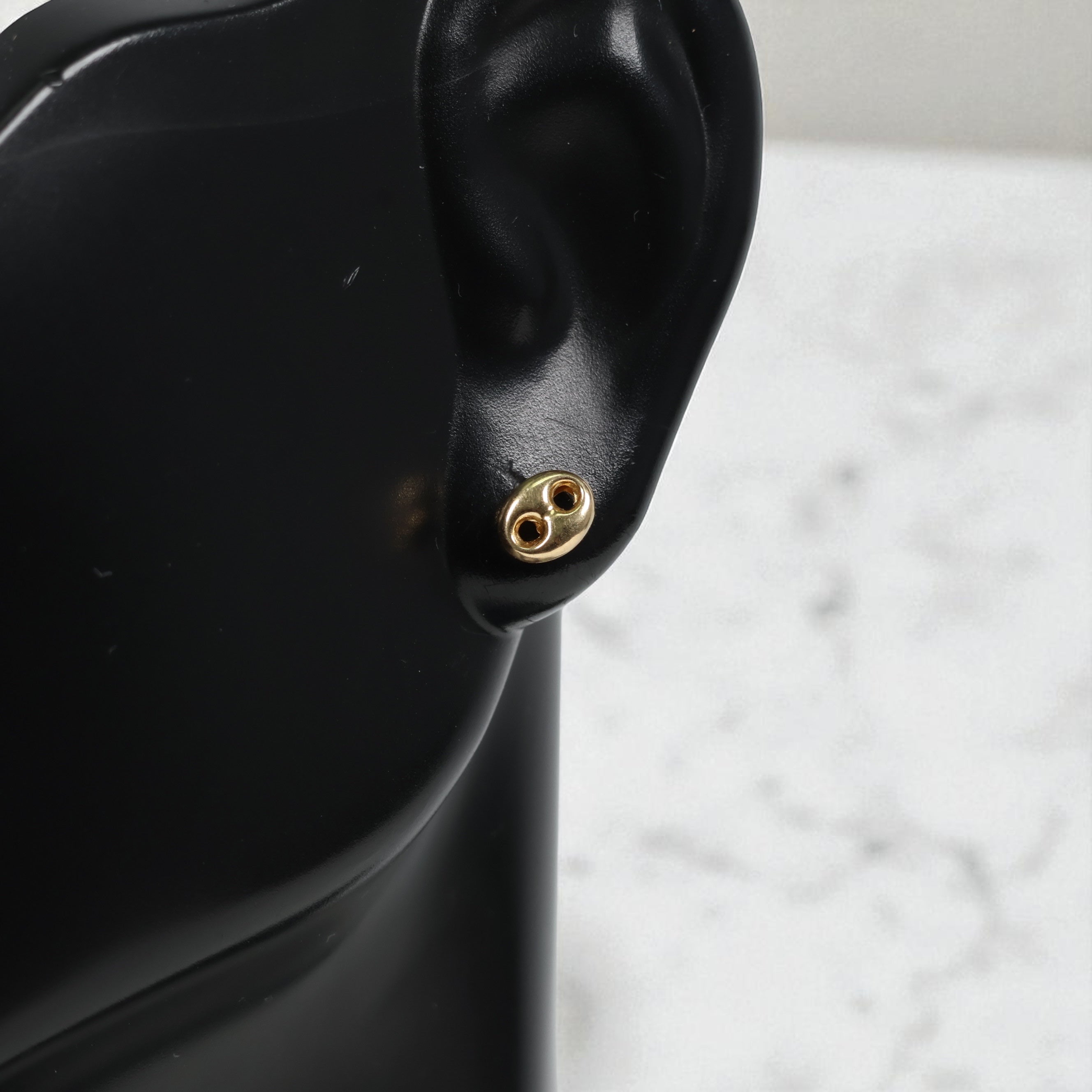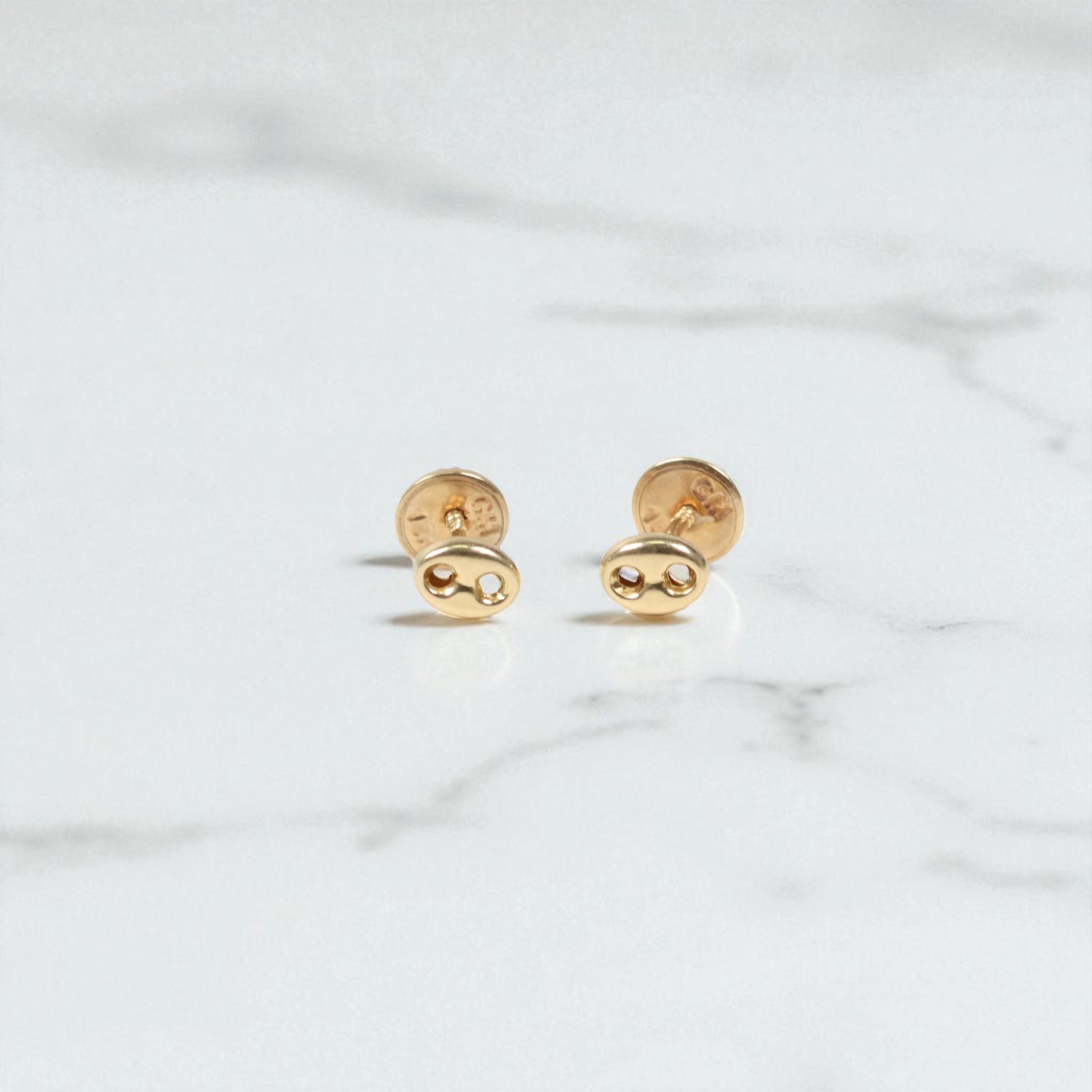 18K YG Little Modern Designer Link Stud Earrings / 0.43gr / 5mm /