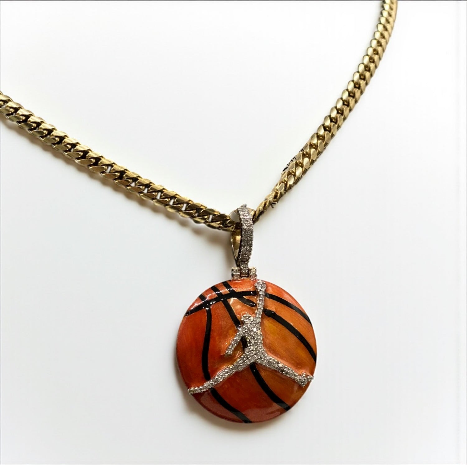 Basketball Pendant 10K Yellow Gold With Diamond / 0.40Ct Dia / 9.2gr