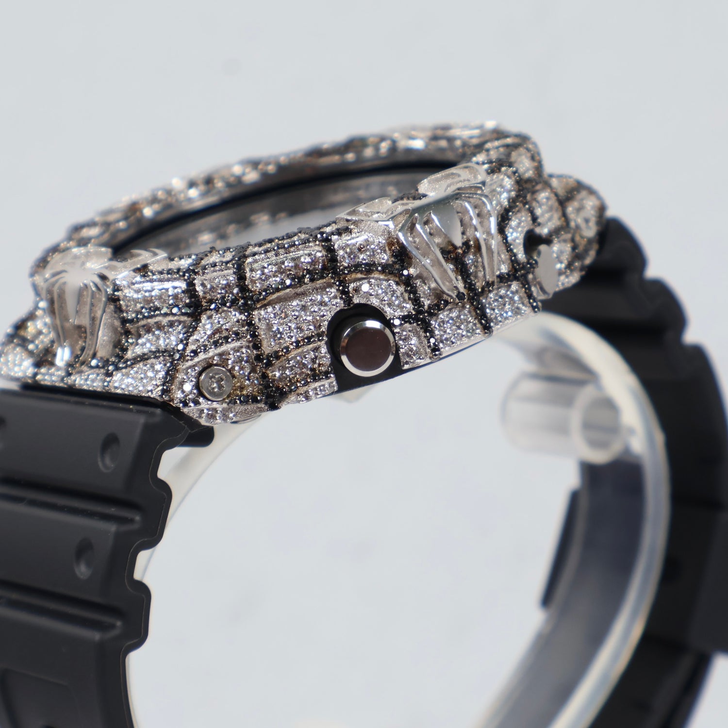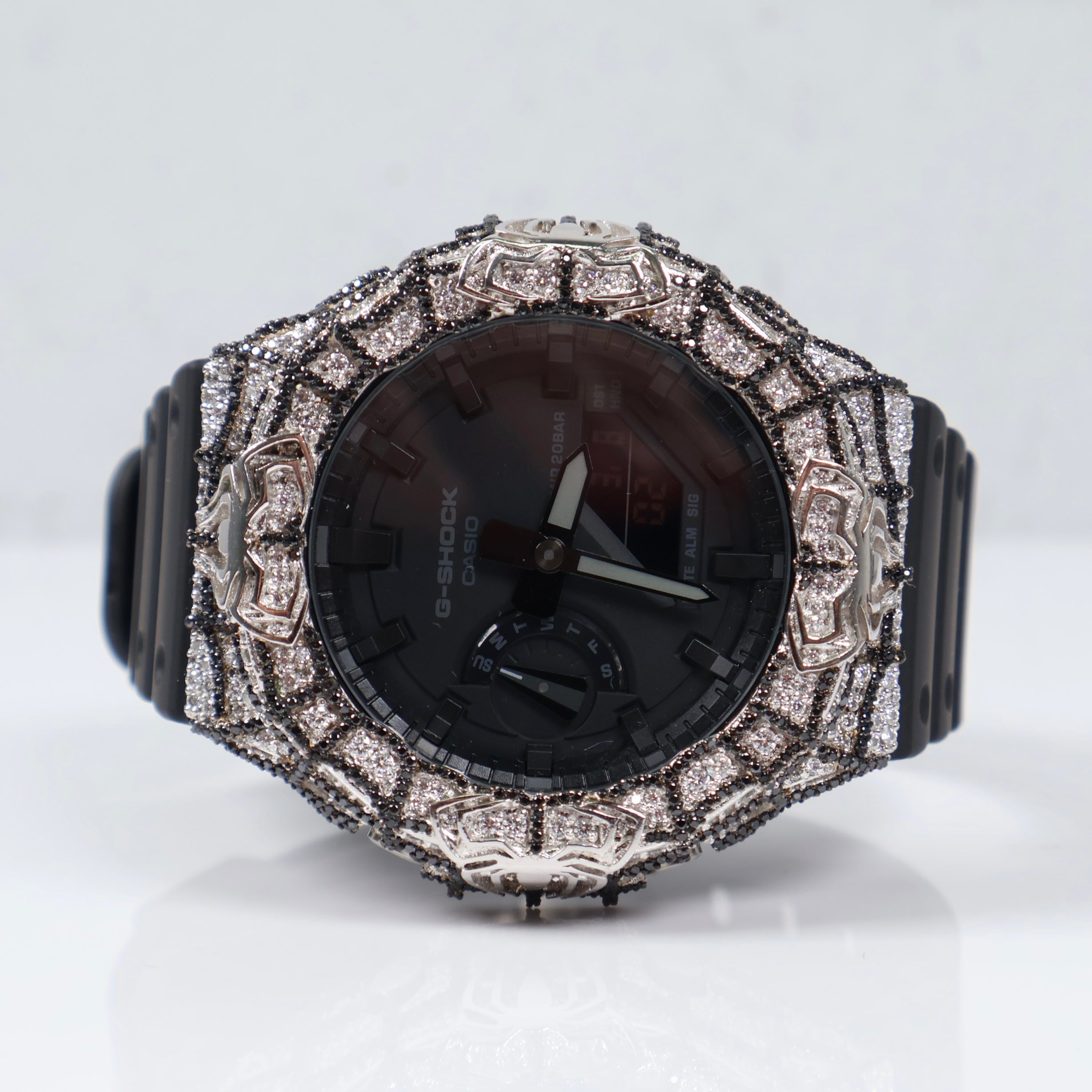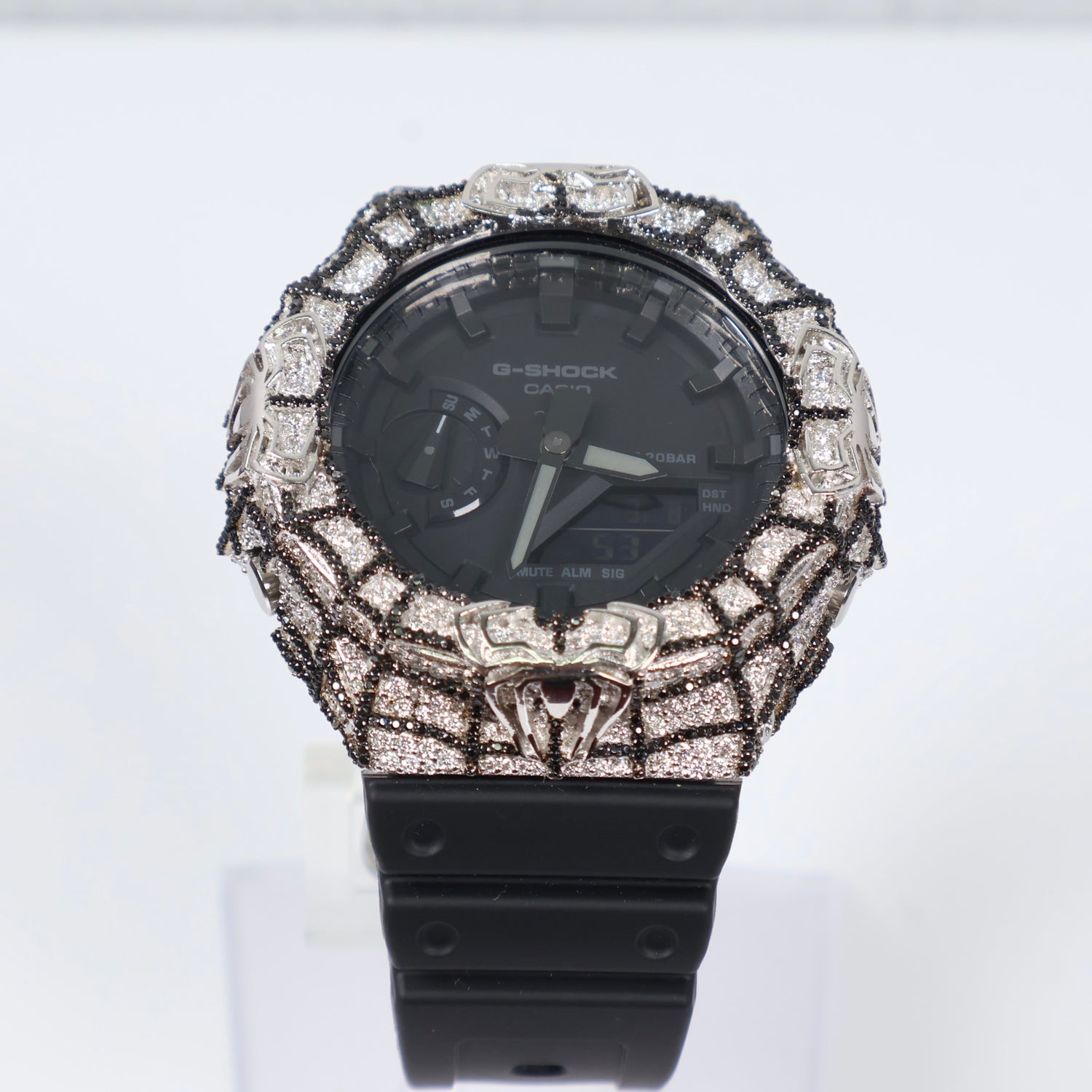 G-Shock Silver Round Moissanite Black Stone With Black Spider Animal Designer Bezel Watch / / / RP 5 1/2Cttw
